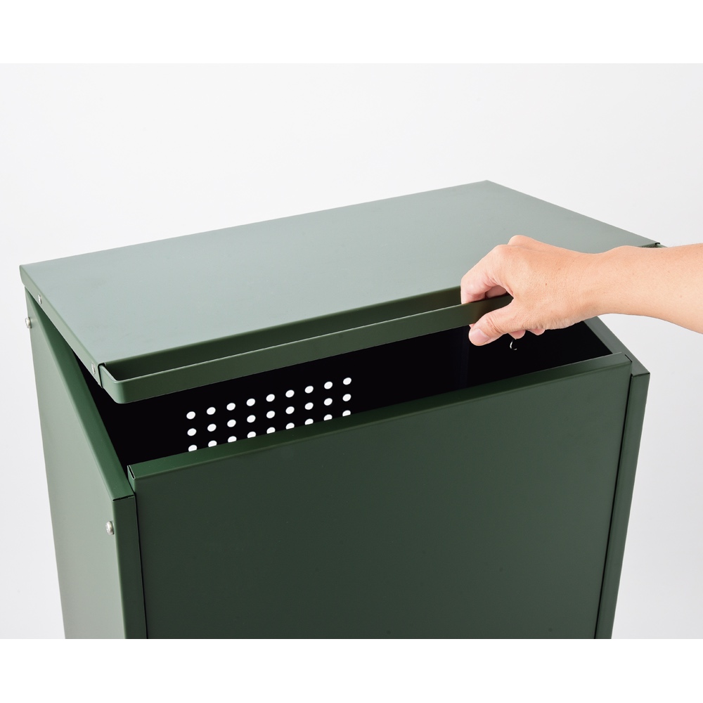 場所を選ばず置ける!一時的にゴミを保管できる、幅も奥行もコンパクトな収納庫。裏面は嫌な匂いがこもらないようパンチング穴を使用しており、移動も掃除もラクラクなキャスター付き。頑丈でサビに強いボンデ鋼板製のゴミ保管庫です。◆幅も奥行もコンパクト幅47.5×奥行36×高さ86cmとスリムで、見た目が可愛いのでベランダや玄関先のアクセントにも最適。70リットルのゴミ袋が入り、収集日までペットボトルや細かなビニール類のごみ置き場として使えます。◆吉谷さんが選んだおしゃれな2色展開どんなお庭にも馴染む、ガーデングリーンとダークグレーの2色をご用意。◆こだわりぬいた使いやすさ!・キャスター付きで移動も掃除もラクラク。・細めの持ち手はスムーズに稼働。・自立する鎖状のストッパー付き。・底面の両脇に水抜け用の隙間をつくり、雨が降っても溜まらず安心。・ゴミの嫌な匂いがこもらないよう裏面にパンチング穴を装備。