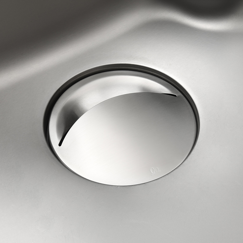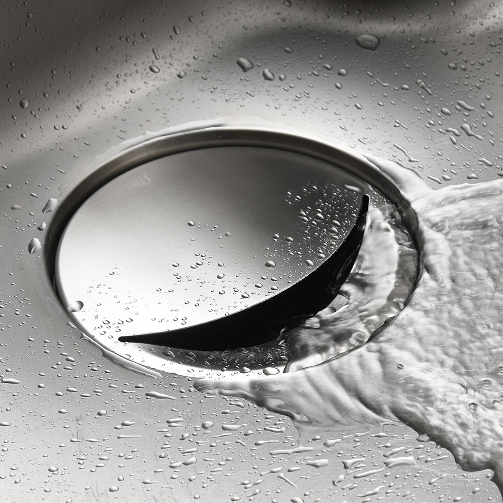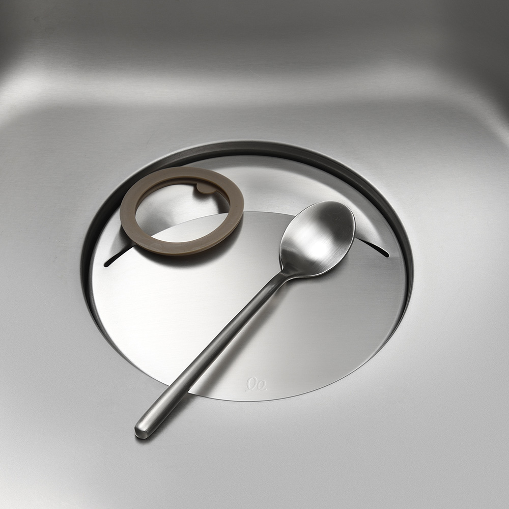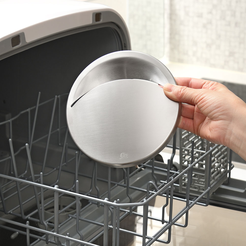 銅配合のステンレスで、ぬめりにくく清潔な毎日銅配合のステンレス素材だから、銅イオンの抗菌効果でぬめりを軽減。4時間後には菌を約98%抑制。ぬめりにくく、サッと洗えるので、清潔な毎日が送れます。広いドーム型のカバー面なので、スプーンやパッキンなどの小物がズリ落ちにくい。カバー面が広いので、洗い物時に食器が置けてシンクを広く使えます。水が残りにくい開口部。シンプルな形状なのでサッと洗えます。シンクに馴染むステンレス蓋なので、排水口をスッキリカバー。シンクの見た目がワンランクアップします。金属加工の街「新潟県燕三条」の職人がひとつひとつ丁寧に仕上げています。