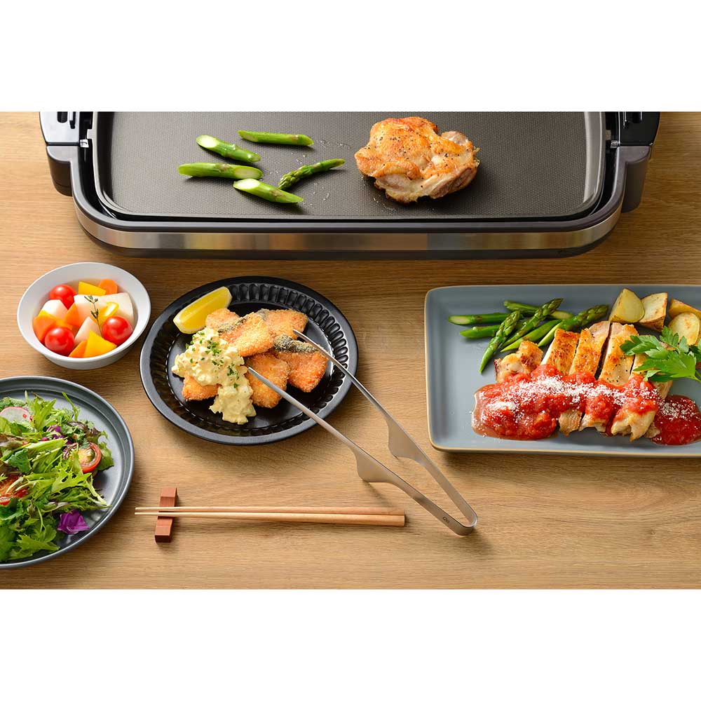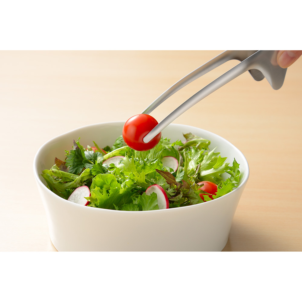 おうち焼き肉を快適に!衛生的で使いやすい焼肉トング。薄いお肉もスッとつかむ先端設計細くて鋭い先端が薄いお肉の間にもスムーズに入り込み、しっかりとつかめるので、焼肉の取り扱いがとても簡単に。特許技術により先端がぴったり合わさり、ズレにくい設計です。テーブルを汚しにくい設計で衛生的先端部はテーブルやお皿に触れないちょうどいい高さで設計されているため、置いたときに食卓を汚しません。お皿がたくさん並ぶ食卓でも邪魔にならず、清潔に使い続けられます。衛生面を気にする方にもぴったりのトングです。丈夫で長持ち、安心の燕三条製素材には錆びにくく耐久性の高い18-0ステンレスを使用。日本製ならではの丁寧な作りで、長く愛用できる安心感があります。シンプルな形状で洗いやすく、先端部分はフラットなので汚れも簡単に落とせます。軽くて使いやすいコンパクトサイズ全長24cmと扱いやすいサイズで、力を入れずに軽快に操作できます。細身ながらもしっかりとしたバネ感で、つかみやすさと使いやすさを両立。焼肉だけでなく、プチトマトなどの小さな食材も滑らずキャッチ。菜箸や盛り付け箸の代わりにも使えます。