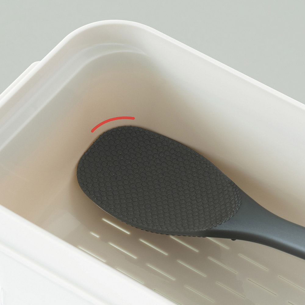 しゃもじは本体に収納した際に、持ち手が浮く設計。