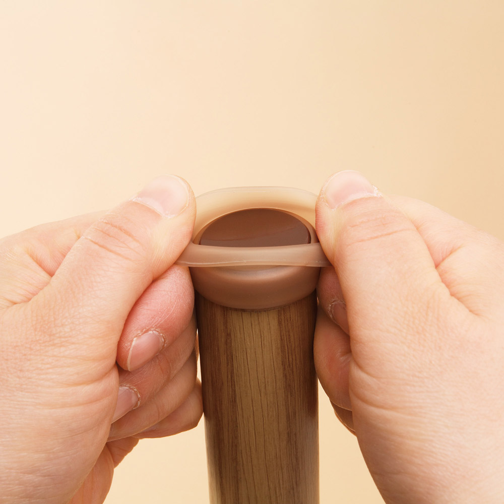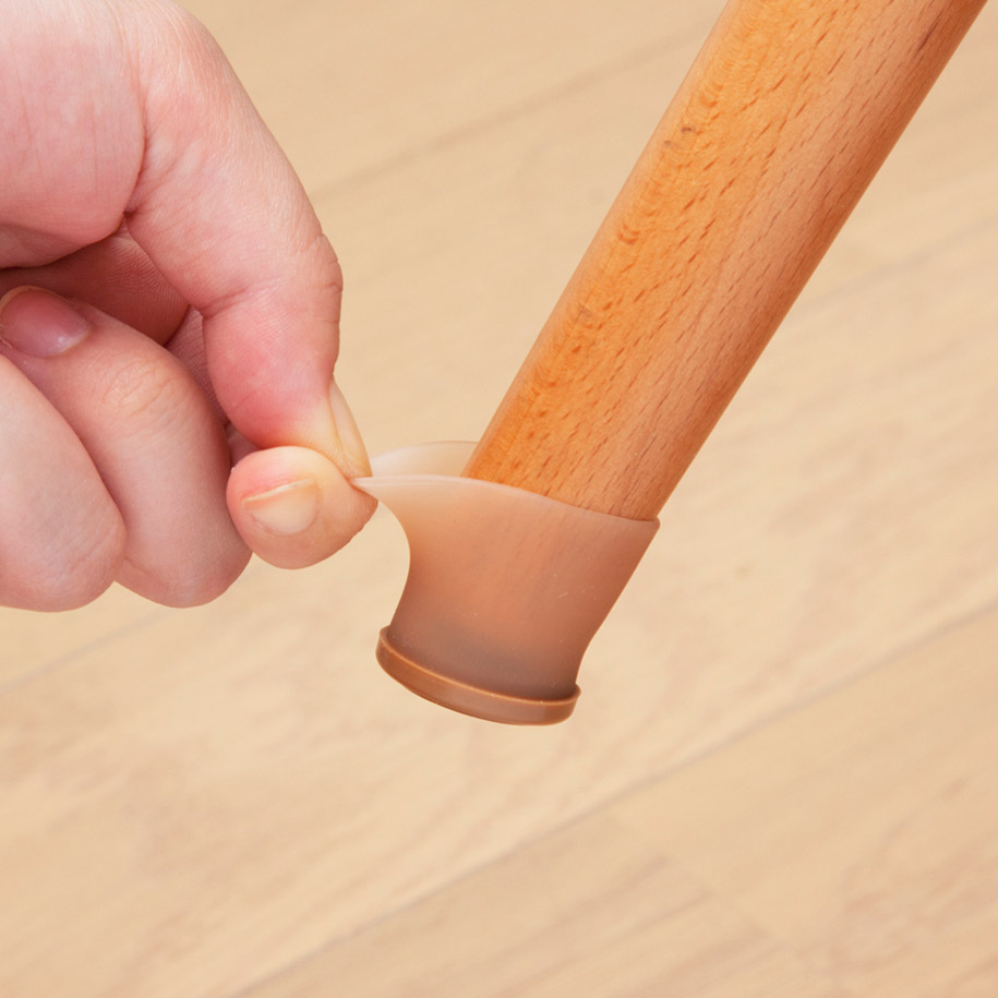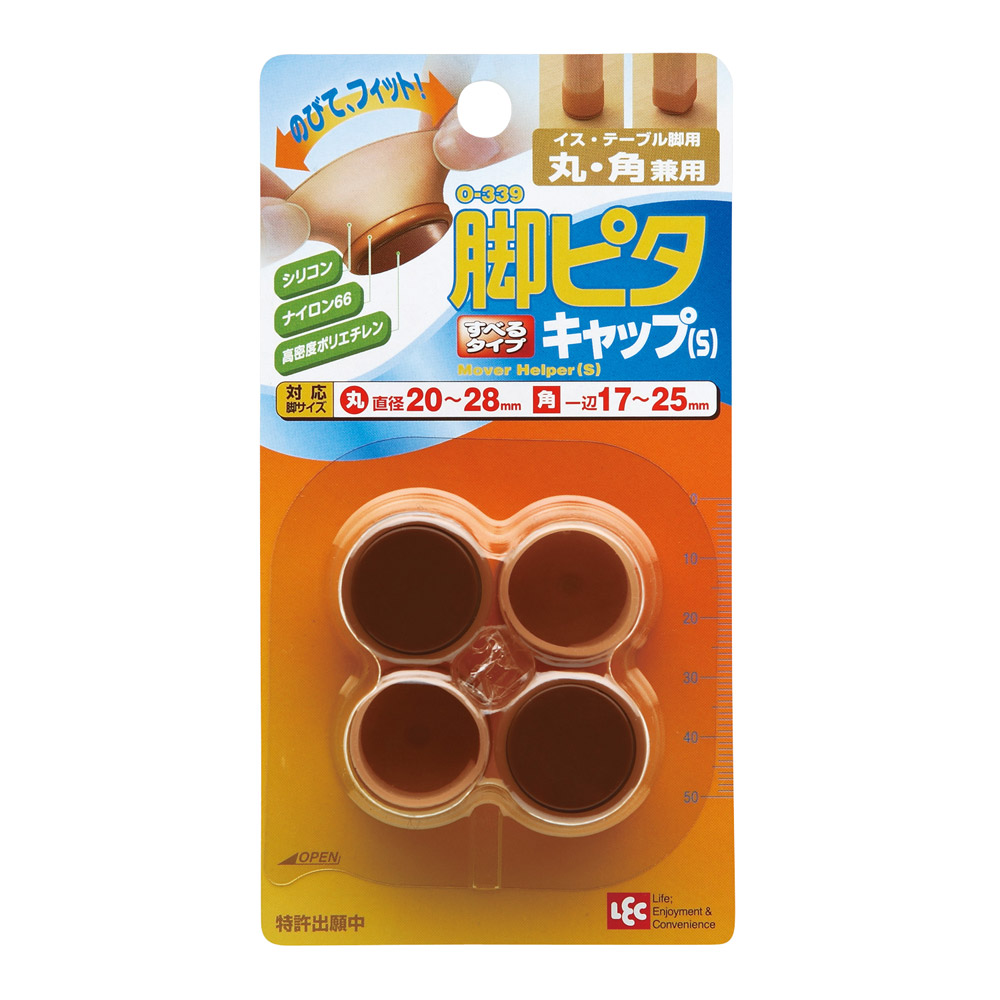 のびてフィット!伸びるシリコンキャップ!イス、テーブル脚用。丸・角兼用!●底面は高密度ポリエチレンですべりが良く、家具の移動がスムーズになります。●伸びるシリコンキャップで簡単に取り付け。●フローリング、カーペットで使用出来ます。●対応脚サイズ…丸直径20から28mm、角一辺17から25mm【使用方法】(1)取り付ける脚のサイズ・形状と脚キャップの適合サイズ・形状が合っているか確認し、 取り付ける脚の上に向けておく。(2)キャップを完全に裏返しにする。(3)取り付ける脚の底部にキャップもの底面を合わせ、シリコン部分を伸ばしながら脚をかぷせる。