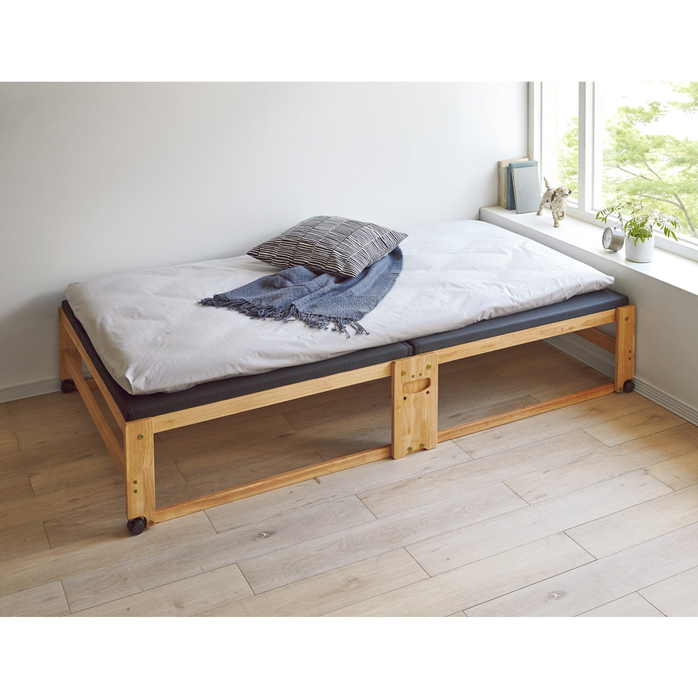 使い慣れたお手持ちの布団も敷いて使えます。 ※写真はワイドシングル・ハイタイプです。