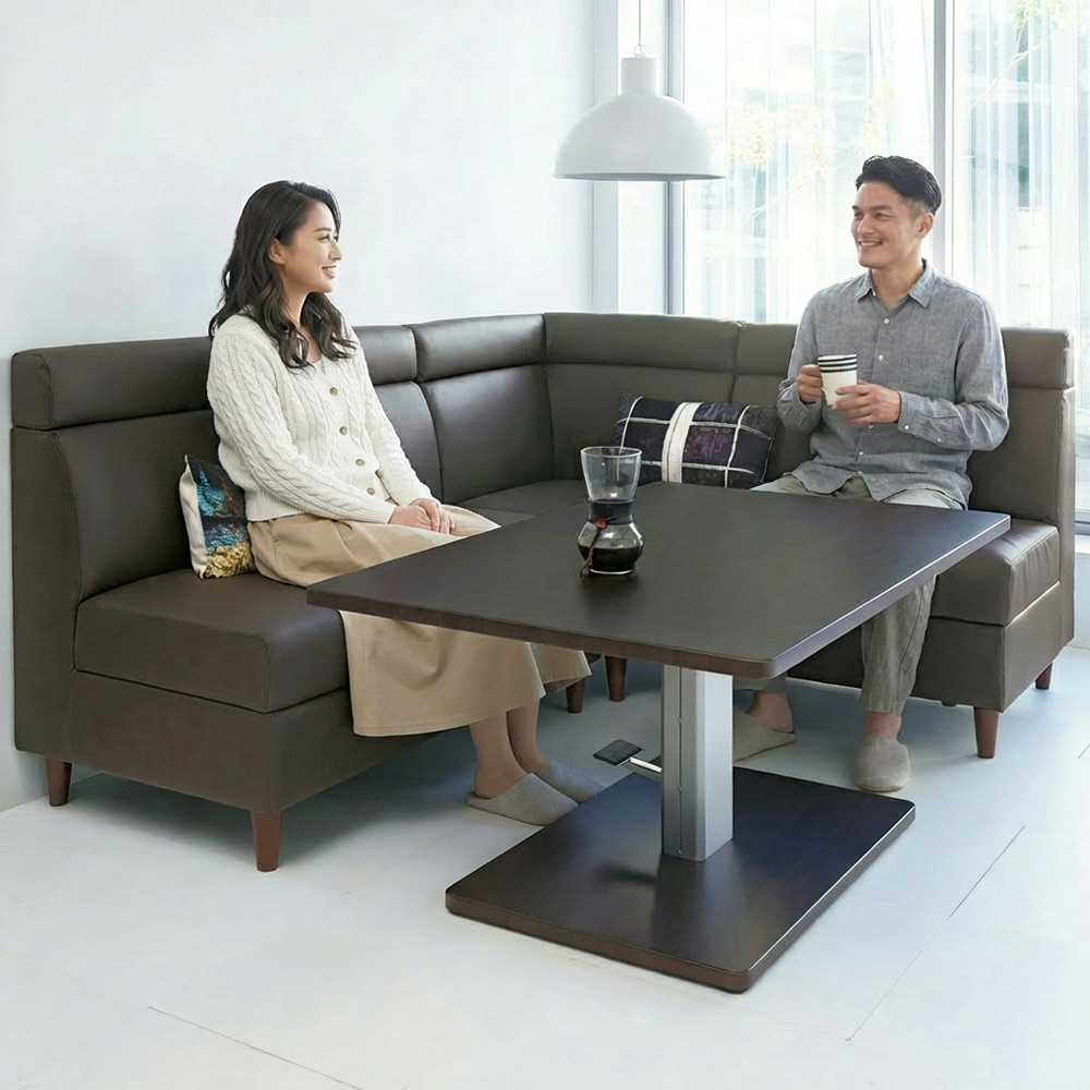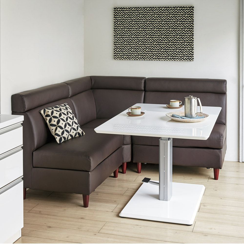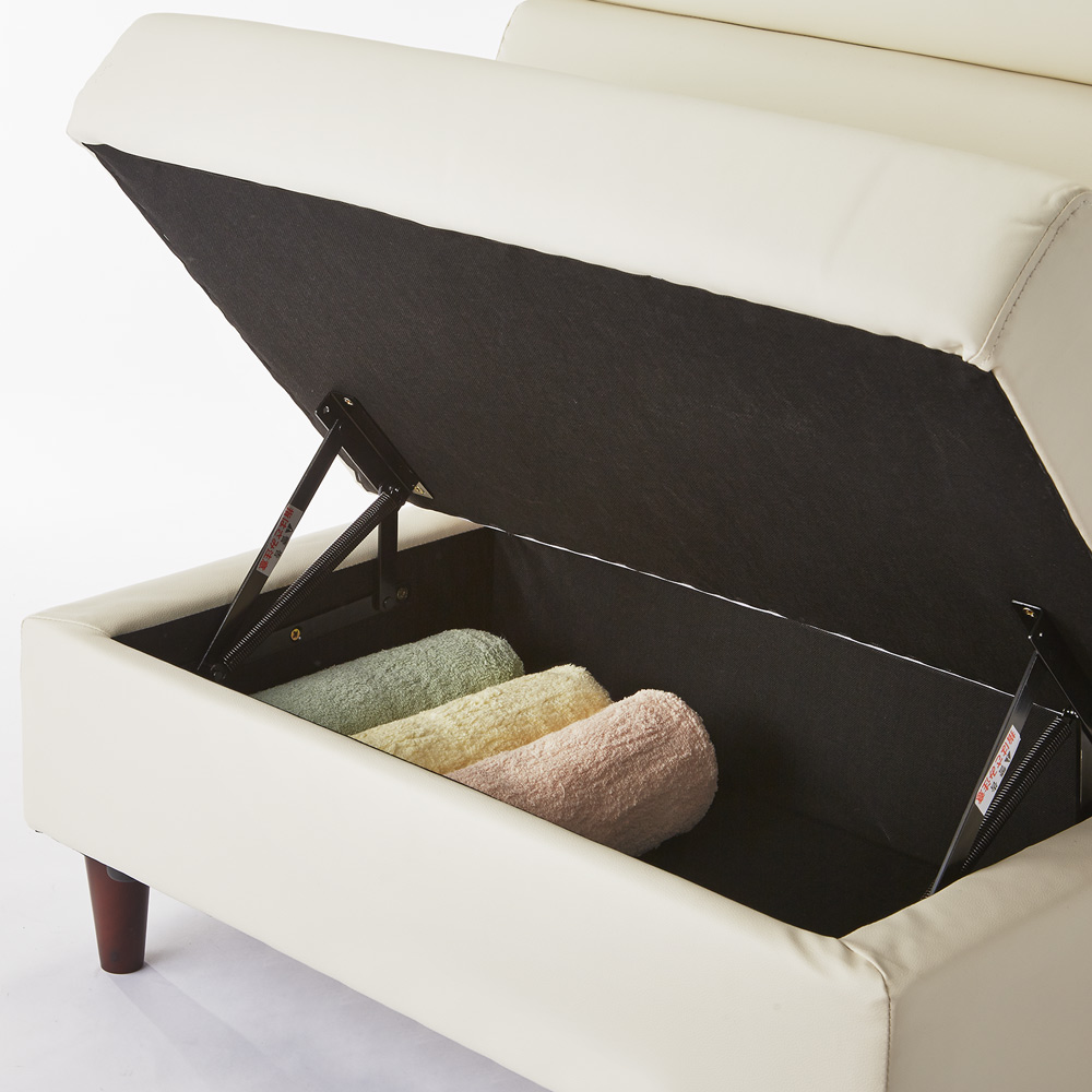 限られたスペースを有効活用できる収納スペース付きのソファ。合成皮革なので食べこぼしもさっとひと拭き!テーブルに合わせてダイニングソファとしても。【ご注意】このページはソファ幅85cm単品の販売ページですソファとダイニングセットを合わせておくスペースがない方にお勧めなLD兼用タイプ。リビングの主役になる家具ですので機能面にも見た目にもこだわりたいですね。たっぷりとした収納やモダンなシルエットなど、お部屋をすっきり見せる魅力満載の一品です。[ point01 ] 収納たっぷり!収納庫付ソファソファには収納たっぷりな収納庫付き。(※コーナーソファには収納庫はございません。)リビングで何かと散らばりがちな雑誌やブランケット、そのほか普段あまり使わないものをしまっておくのにぴったりです。大きめのものを入れても出し入れで手間取る心配もありません。[ point02 ] 食べこぼしも安心。合成皮革ソファでお手入れ簡単。ダイニング兼用のソファであれば心配なのは汚れです。お手入れのしやすさを考え、張地には合成皮革を使用しました。食べこぼしもさっと一拭きでなかったことに。清潔感あふれる豊かでくつろぎのダイニングづくりに一役買ってくれそうです。[ point03 ]大人のモダンさを感じさせるシンプルスマートなシルエット省スペースをかなえるLD兼用ダイニングソファですが、見た目はまるでラウンジに置いてありそうなモダンな顔。無駄のないシルエットだけでも、ますますお部屋を広々と見せてくれそうです。何かと生活感のあふれてしまうリビング・ダイニングを、このシリーズで余所行きの顔に変身させてみては?〜担当者の座り心地コメント〜座面構造は、鋼製バネの上に少し硬めのウレタンが敷きつめられていて程よい硬さが体を支えてくれます。また、収納庫付きなので雑誌やブランケットなど収納すればソファに座ったまま取り出せ、わざわざ動く必要がなくなる優れものです!!