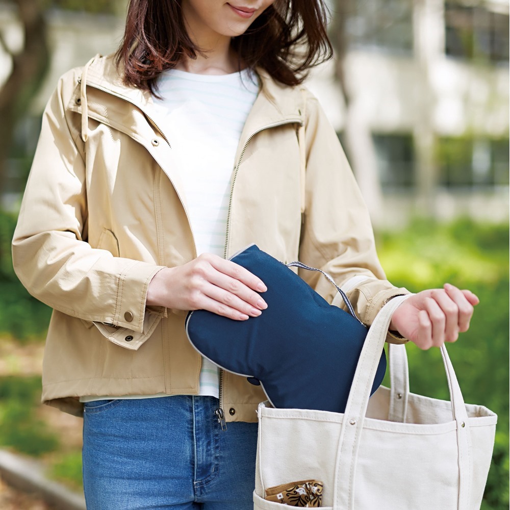 (ア)ネイビー 折りたたんでボタンを閉じてコンパクトに。