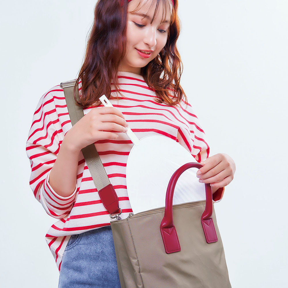 推し活アイテム一式が入る大容量バッグ。 落ち着いた色だから通勤バッグとしても使用できます。オタバレしたくない方にもさりげなく推し色を。ファスナー付きのポケットにはジャンボうちわがすっぽり。気が付けば飛び出している柄ともおさらば。ショルダーベルト付きだから クロークがない現場でも 両手が開いて全力で応援できる!muchu muchuのバッグインバッグがぴったり入る!セットで合わせて充実した推し活を!日常に溶け込む推し活・無理しない推し活・もっと推し活が楽しくなる をテーマに大人のための推し活ライフを応援するブランド「muchu muchu(ムチュ ムチュ)」“推し活”を心置きなく楽しむ! 大人の推し活支援グッズ痒い所に手が届く!推し活女子による推し活支援グッズ。世の中の商品は多くても5色展開。推し色がなくて、悔しい思いをしたことはありませんか?その気持ちが分かるから、メンバーカラーに抜けがない9色にこだわりました。