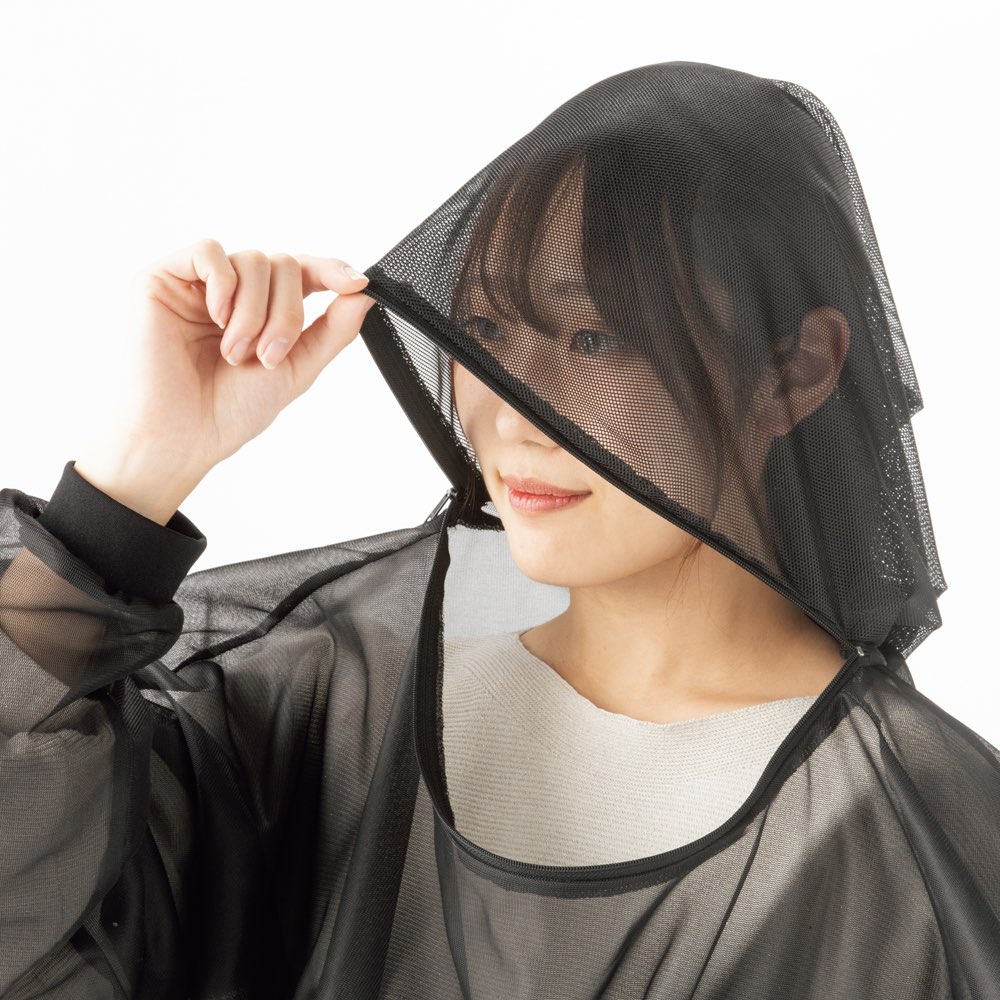 夏の大敵「虫」を徹底ガード。夏の庭仕事の必需品。顔回りは周囲が見やすい編目に、手袋のまま扱いやすい大きめのフード部ファスナー引き手など細かい心配りも。