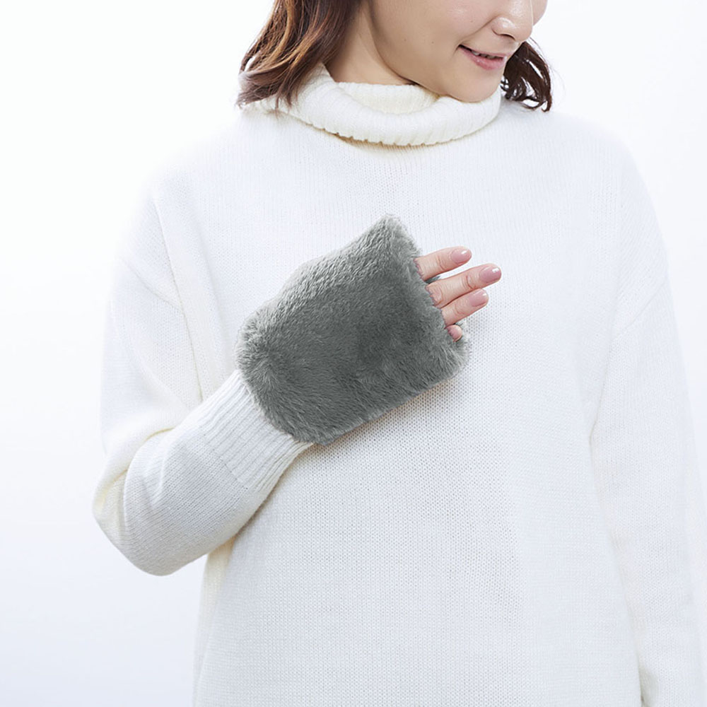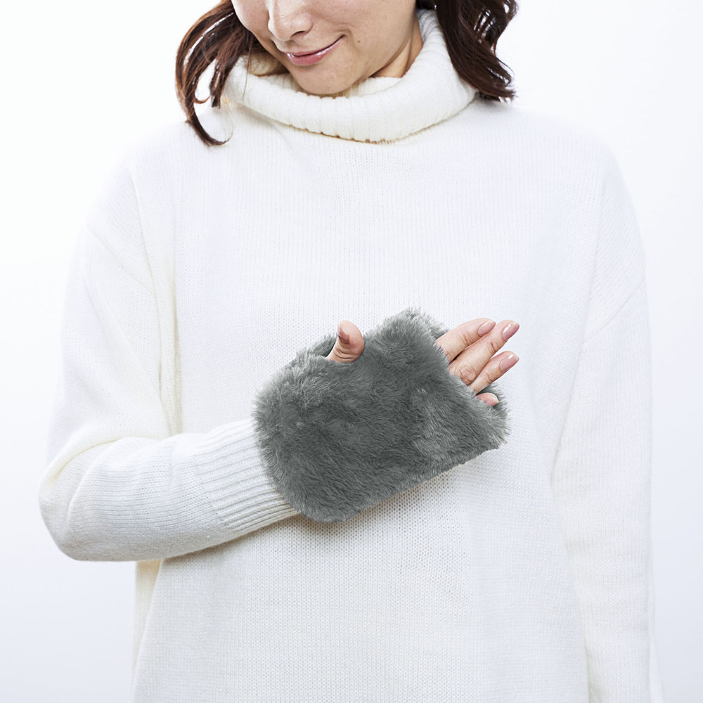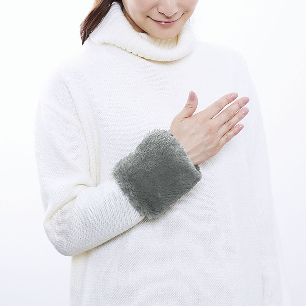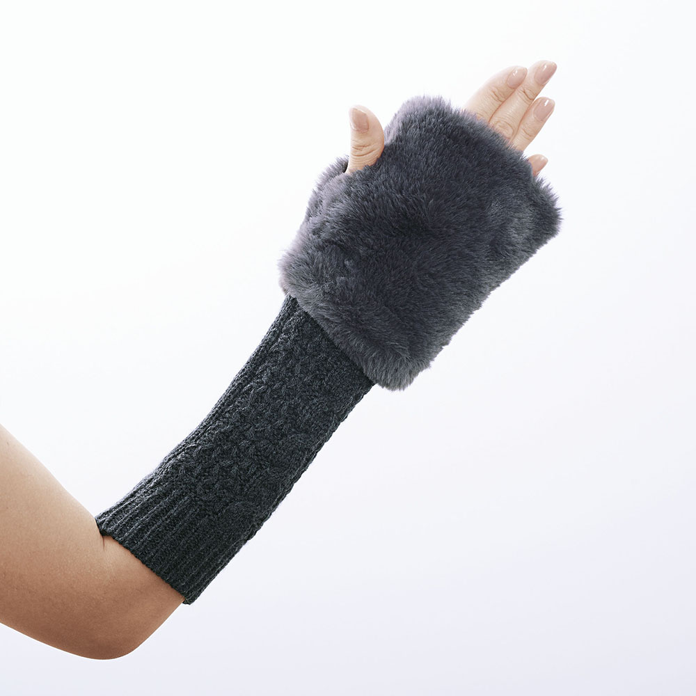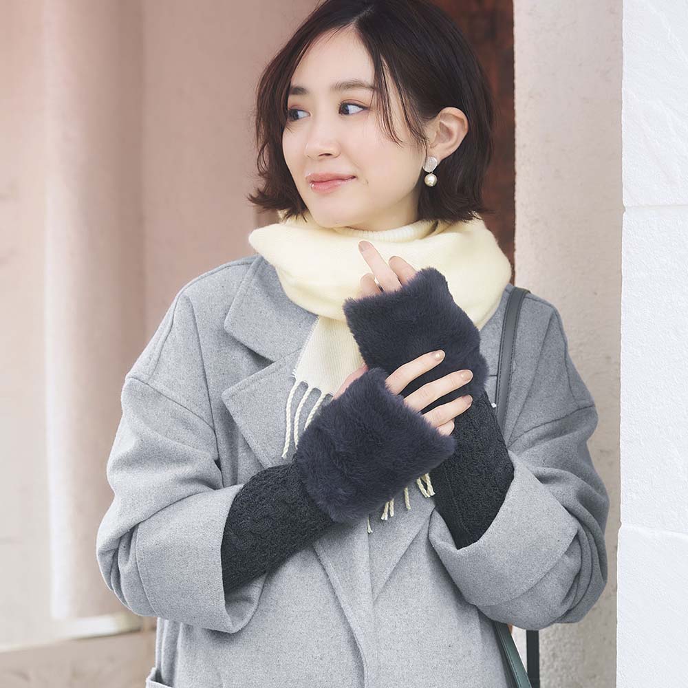 いつもの服にプラスし、冷え対策!あったかファー付きのアームニットカバーいつもの服にこれを付ければファー付きの袖に変身!袖口からスースー入る風を防いであったかおしゃれ。年齢の気になる手の甲も隠せます。