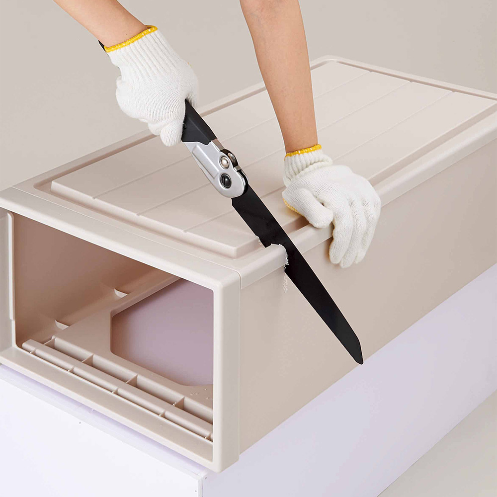 粗大ゴミの解体に!廃棄物をコンパクトに!この多目的廃棄物のこぎりなら、カーペットからステンレス、物干し竿、プラスチック、衣装ケース、鉄などをコンパクトに切ることができます。折りたためばコンパクトなので収納場所にも困りません。あると便利なゴミ処理の強い味方です。<いろんな素材に>カーペット・ステンレス・物干し竿・プラスチック・衣装ケース・鉄・パイプ椅子3段階の角度調整機能付。炭素鋼使用。刃渡り約22cm刃の飛び出しを防ぐロックボタン付握りやすいラバーグリップで疲れにくい!※使用時は必ず安全手袋とゴーグルを着用し、ケガや事故には十分ご注意ください