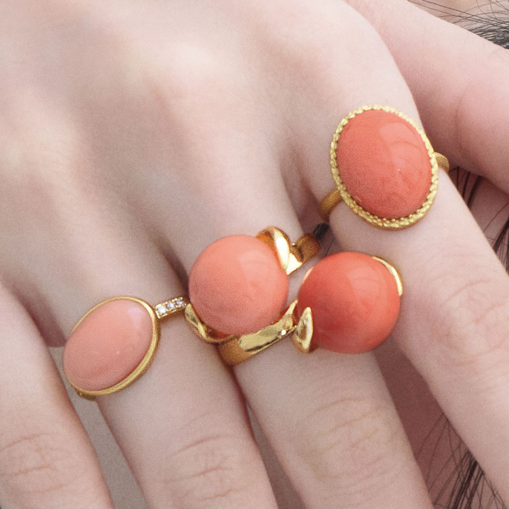 私らしさを色石に託して色のパワーと地球のエナジーを抱くカラーストーンには、気持ちに効く「気」が宿っています。「なりたい自分」を色石に映して、お洒落を楽しんでみませんか?優しい心で満たされる、桃色の珊瑚柔らかな色調が心をほぐすピンク珊瑚。大倉珊瑚店の貴重なストックから多彩なピンクの珊瑚を蔵出し。見事な13mmの大珠をどこから見ても美しい、代々受け継がれたデザイン枠にセット。モモイロ珊瑚と本ボケの淡いピンクより少し濃く格別に美しい、とても希少な「マガイボケ」。