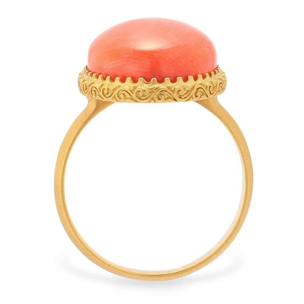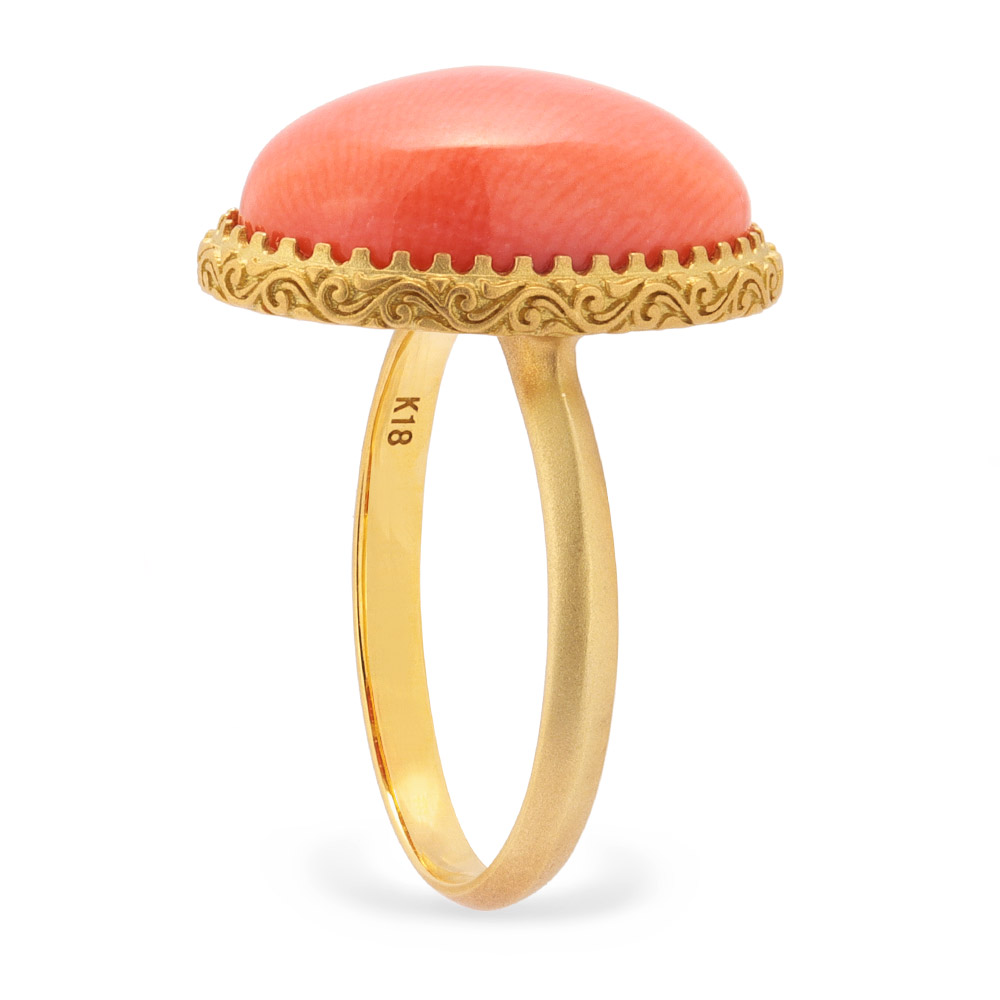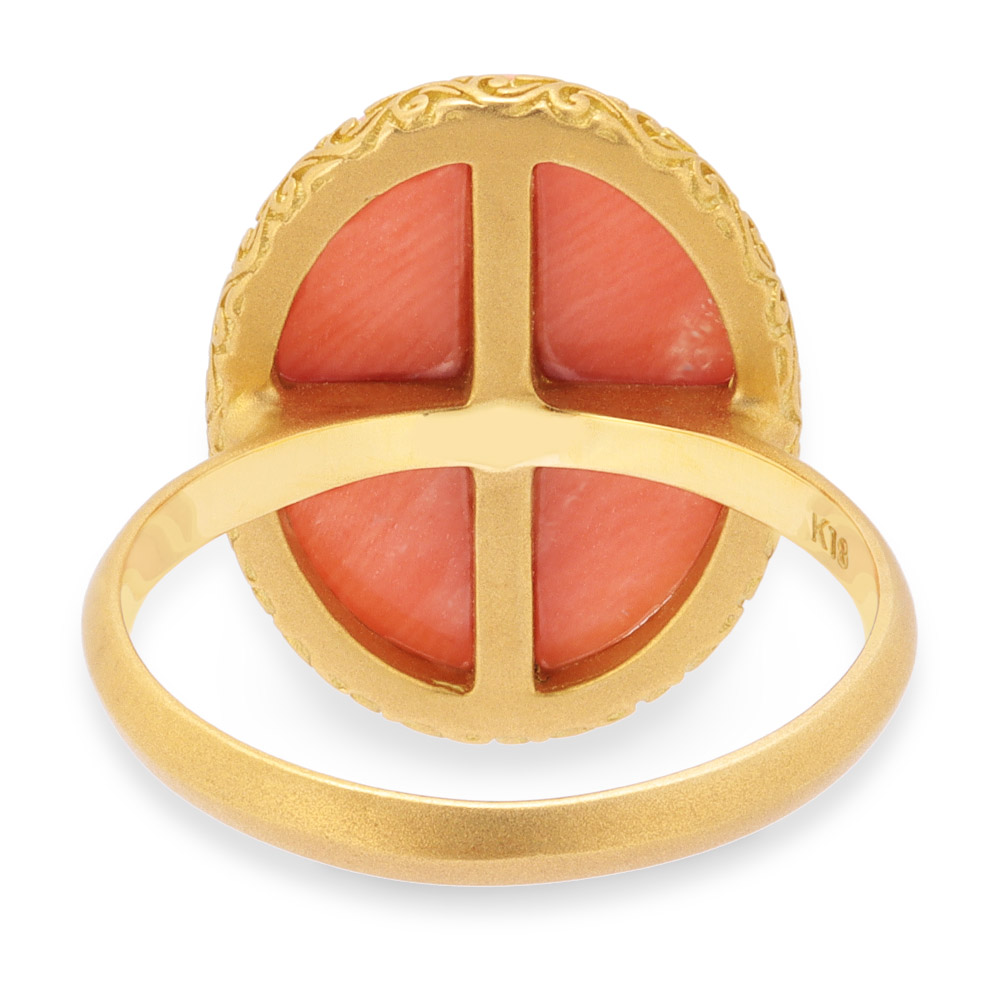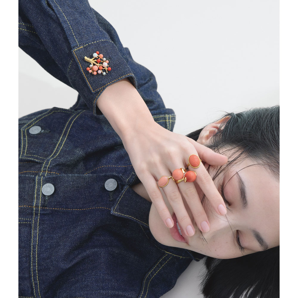 私らしさを色石に託して色のパワーと地球のエナジーを抱くカラーストーンには、気持ちに効く「気」が宿っています。「なりたい自分」を色石に映して、お洒落を楽しんでみませんか?優しい心で満たされる、桃色の珊瑚柔らかな色調が心をほぐすピンク珊瑚。大倉珊瑚店の貴重なストックから多彩なピンクの珊瑚を蔵出し。日本近海で採れるモモイロ珊瑚をオーバル形のリングに。肌になじむ優しい色合い。