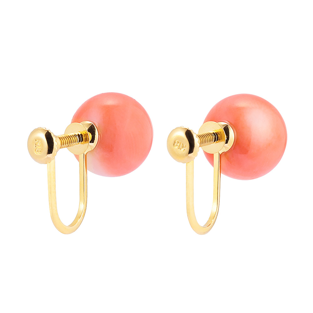 モモイロ珊瑚は日本近海で採取されます。古くから簪や帯止めなどで日本人にはなじみの深い珊瑚の種類です。こっくりと肌なじみのよい優しい色合いです。長年ストックしておいたモモイロ珊瑚のルースをシンプルなイヤリング枠にセットしました。珊瑚が全て見えるデザインで自信のある珠しか使えません。シンプルなデザインは品質のよさが決め手です。