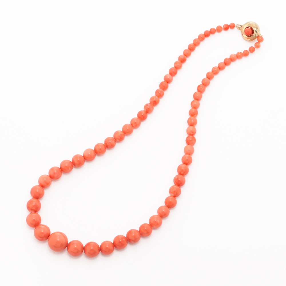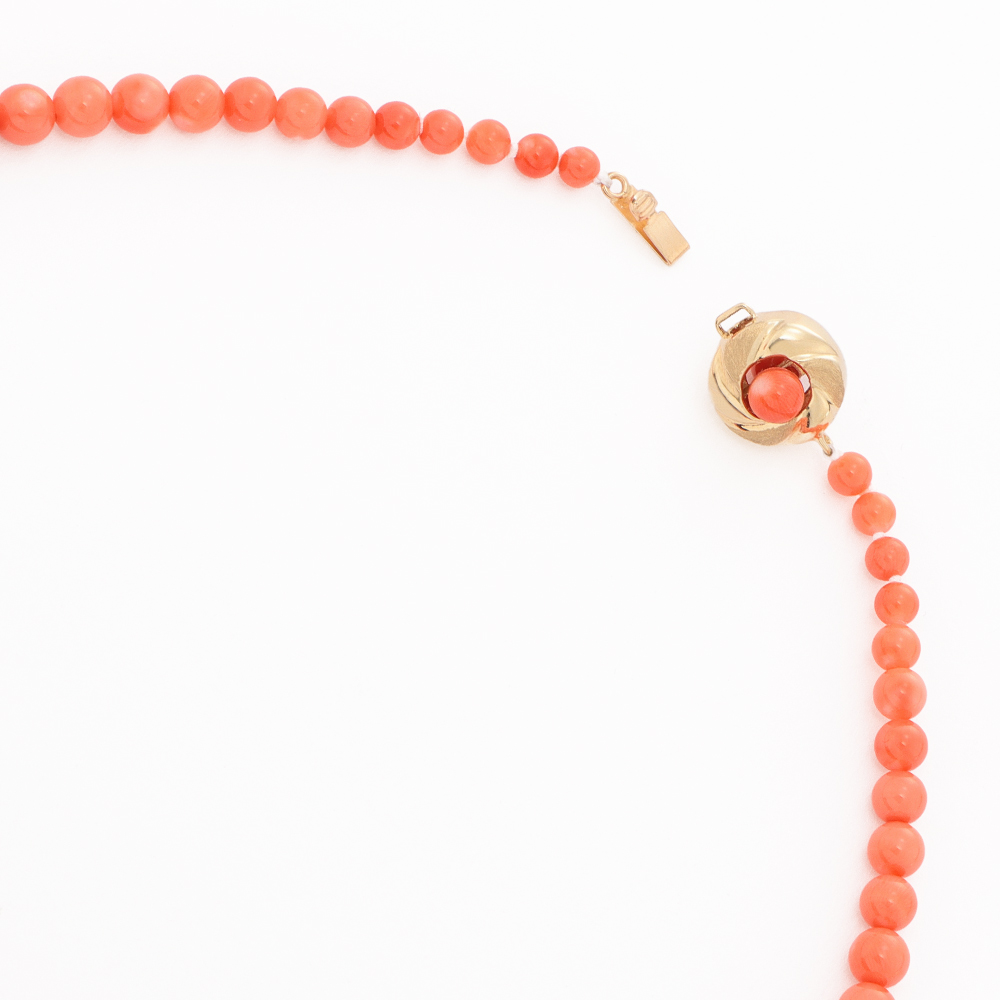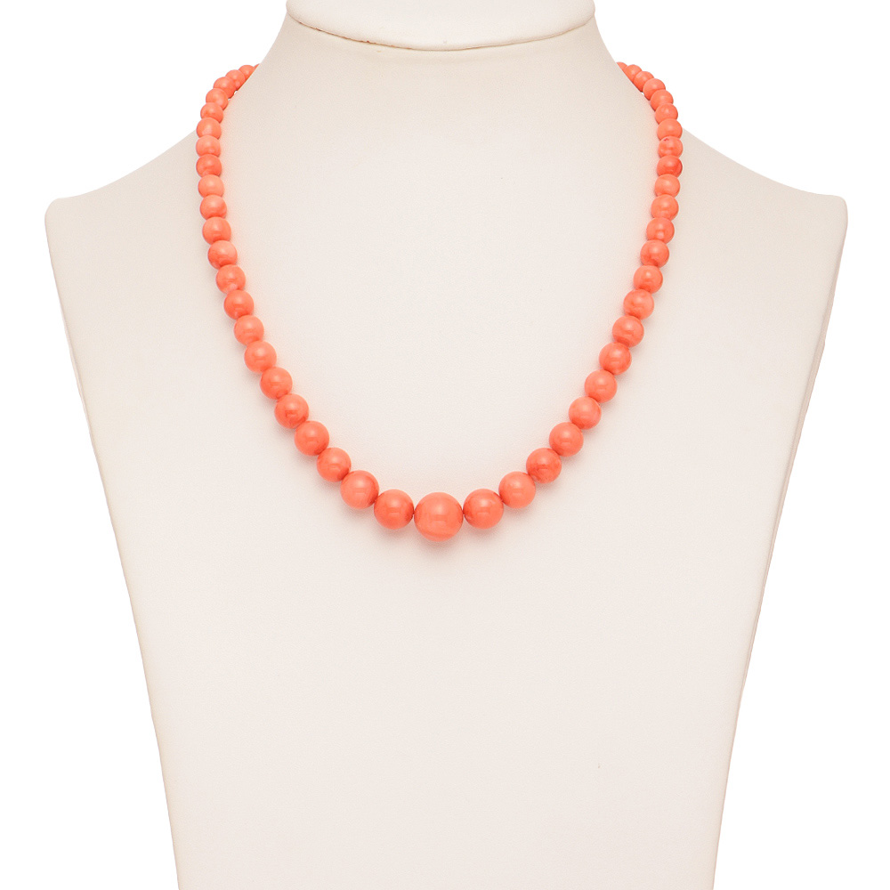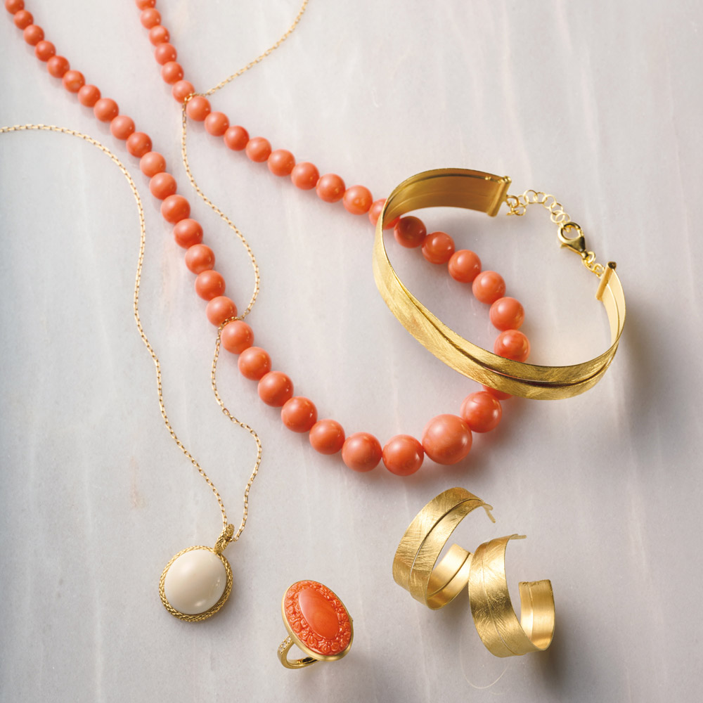 EXPRESS YOUR FEELINGS個性を彩る色石の演出感性に導かれるように纏うカラーストーンジュエリーは、アイデンティティを瑞々しく表現してくれるアイテムです。デザイン×配色で遊んだコーディネート例と共にご注目を。エレガンスの奥行きを語る “コーラル・グラデーション”こっくりとした優しい色合いで、肌に温かみのある華やぎを添えるヴィンテージの希少なモモイロ珊瑚のネックレス。滑らかなグラデーションが、デコルテに品よくなじむ美しさを楽しんで。
