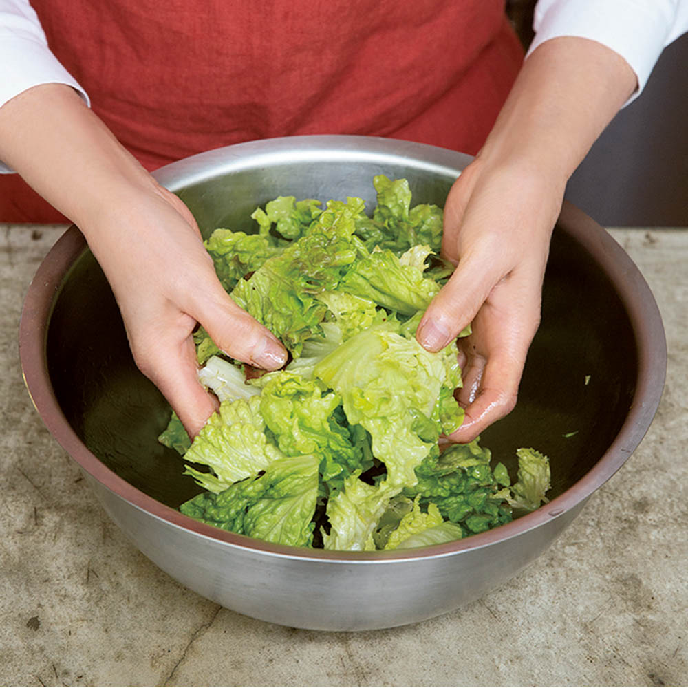 大ボウルはサラダづくりには必須です。ふんわりと空気を含ませながら、ドレッシングを1枚1枚にきちんと絡めるのがおいしいサラダのコツです。