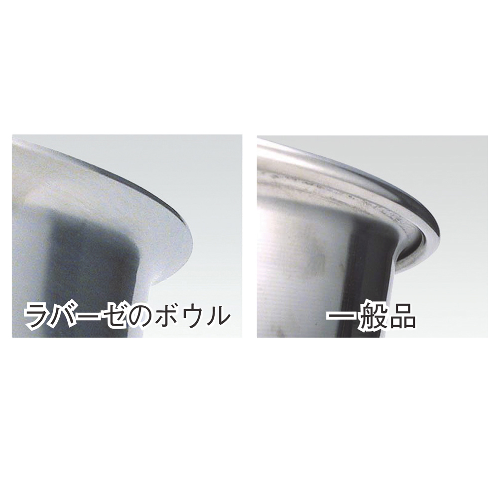 通常のざるはフチが巻き込まれているものが多くそこに汚れが溜まって不衛生になりがち。ラバーゼは巻きこみがなくスットしているのでフチまでしっかり洗えるし、出汁や卵液の切れが本当によく液だレしずらい。