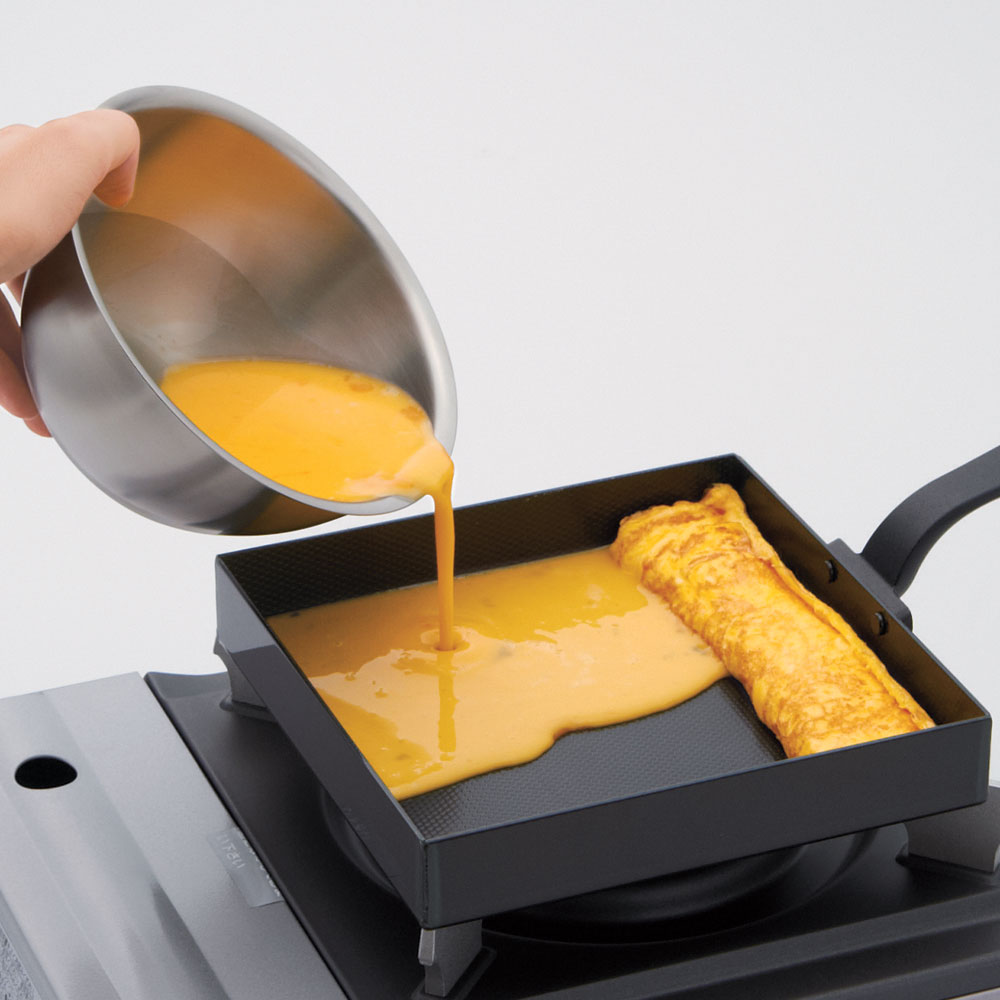 フチに巻き込みがないから卵液なども漏れることなくすっと注げます。