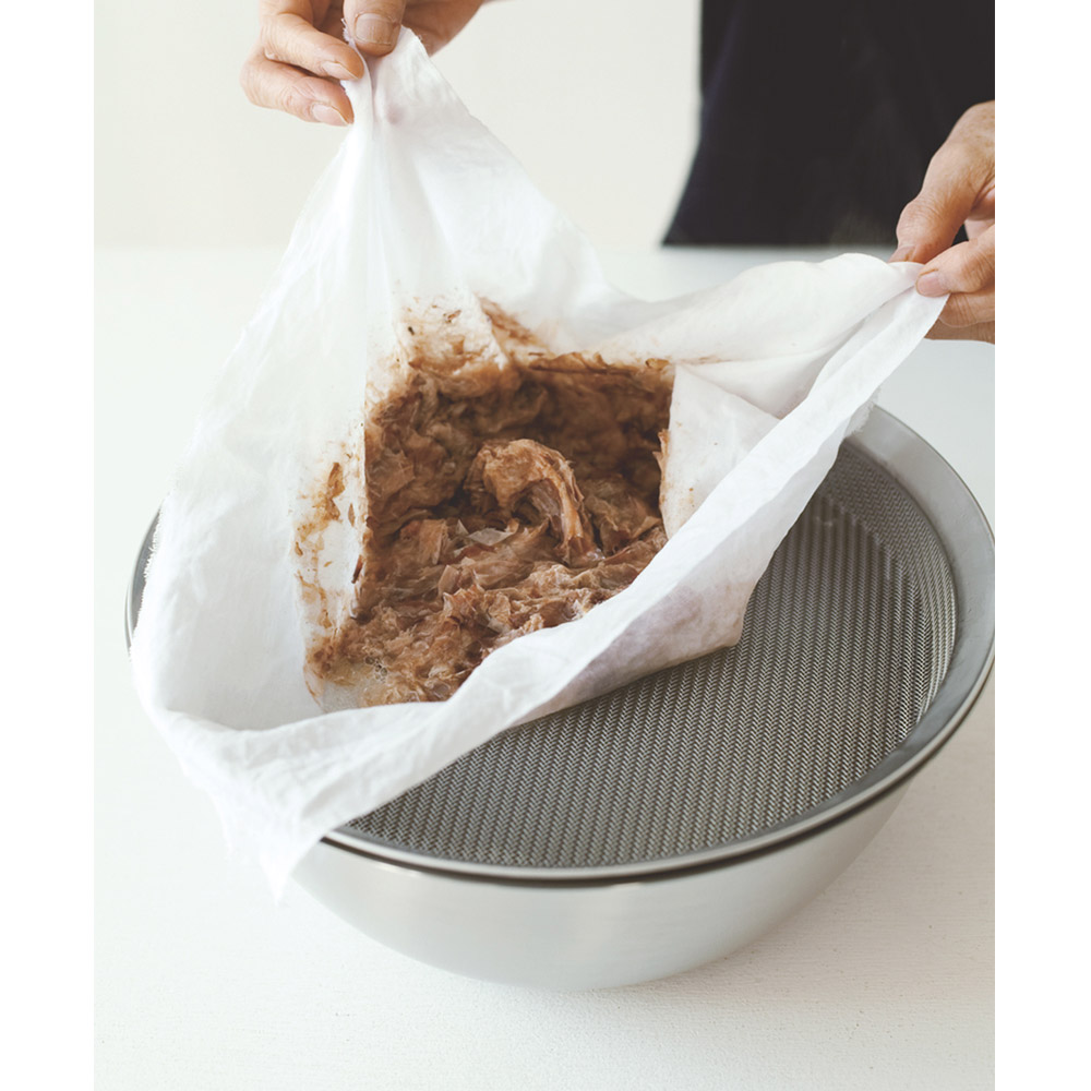 出汁(だし)をこす時に本当に便利な浅ザルできました!有元葉子さんプロデュースブランド ラバーゼで大人気のステンレスのボウル中サイズとザル中サイズと一緒に使うと便利なアイテムです。普通の丸型のザルだと出汁をこす時に、ざるを手で持ちあげなければいけないですが、こちらはフラットで浅いデザインなのでザルの底がボウルの底に付かず、簡単にだしやスープを一度にたっぷり漉すことができます。茹で野菜などをザルにあける際に使えば、野菜が重ならずそのまま冷ますこともでき便利です。縁のつなぎ目が無いので、汚れがたまらず洗いやすく、清潔です。ワイヤーを綾織りで織っているため、丈夫で水切れがよいです。■料理理研究家 有元葉子さん■3女を育てた専業主婦時代からの実践、雑誌や書籍やテレビ等で多くの料理を提案してきた経験から、機能的な台所道具のシリーズ「ラバーゼ」などをメーカーと共同開発。確かな目で選ばれ、作られるアイテムは、そのおいしい料理レシピとともに人気が高い。