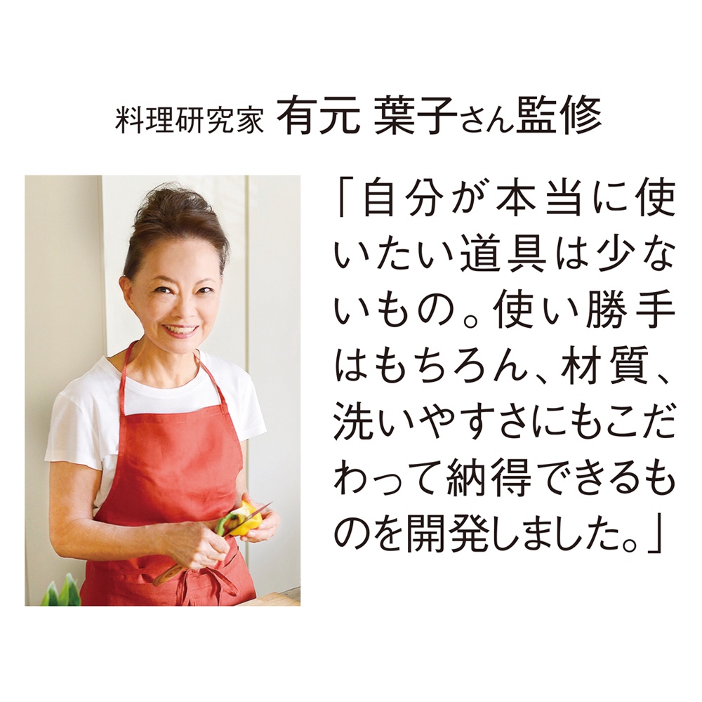 上質な基本の料理道具をコンセプトに、料理研究家・有元葉子さんが考案、日本の生産技術から生まれたキッチンウェアブランド。