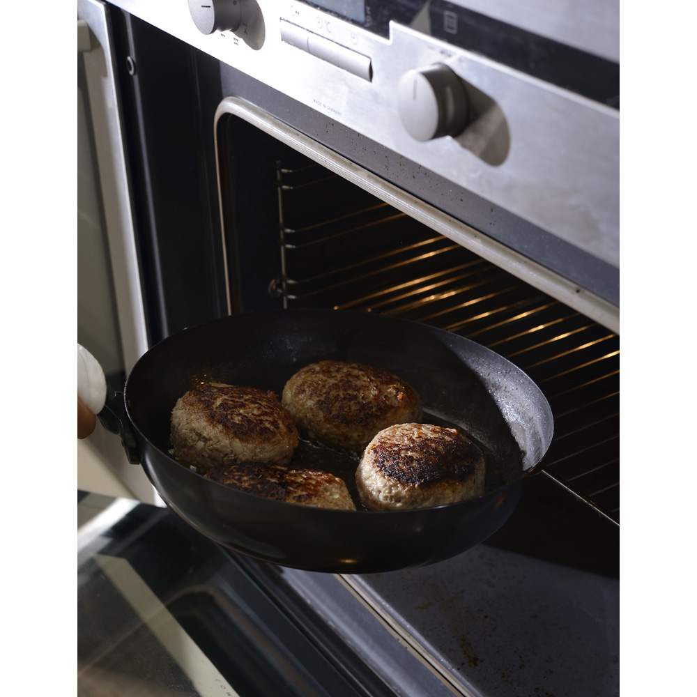 人気料理研究家の有元葉子さんの商品。鉄のフライパンのご紹介です。短い柄でオーブン調理も叶え、生焼け知らずのジューシーハンバーグは感動の味。油なじみ抜群、使うほど愛着が育つあなただけの最高の相棒に。生焼けの心配なし!有元葉子さん監修「ラバーゼ 鉄のフライパン」で、ハンバーグがもっと得意に。健康面や耐久性の高さから、「やっぱり鉄のフライパンがいい」という声が、今、ぐんぐん高まっています。料理研究家・有元葉子さんも長年、鉄のフライパンを愛用し、その魅力を次のように語ります。「くっつかないフライパンは塗装が剥がれると使えなくなるのが嫌で私はもう長年鉄のフライパン一筋です。これなら一生使えますし、目玉焼きも野菜炒めのステーキも何でも美味しくできるんです」有元さんがプロデュースしたラバーゼの鉄のフライパンは、一般的なフライパンとは異なり、柄の長さが男性の握りこぶし1個分ほどしかないのが最大の特徴。この短い柄には、料理をより美味しく、楽しくするための有元さんの工夫が凝縮されています。【有元流ワザ】フライパンごとオーブンへ!生焼け知らずの、ふっくらジューシーハンバーグ。「オーブンに入れられるように、この短さにしました。うちのハンバーグは大きくてまんまるなのですが、片面を焼き付けたら返して、フライパンごとオーブンに入れちゃうんです。200℃のオーブンで10分焼けば肉のうまみたっぷりの本当に美味しいハンバーグができます。ガスコンロで焼く場合は、火の通りが悪い真ん中を凹ませる必要がありますが、オーブンで焼けば生焼けの心配もなく中までふっくらジューシー。どなたでも驚くほど美味しくできます」有元さんのこのコメントの通り、このフライパンがあれば、夢の「大きくてまんまる、ふっくらジューシーなハンバーグ」が、誰でも簡単に作れます!もう生焼けの心配も、焼き加減のストレスもありません。鉄のフライパンは一生もの。使うほどに油なじみがよく、美味しく「育つ」道具。有元さんがメーカーと一緒に鉄のフライパンを開発したのは、約10年も前のこと。そこには、長年の経験から生まれた、数々のこだわりがあったと続けます。「揚げ焼きや炒めものが作りやすいように、油はねが少ないように、深さがあること。ヘラが入りやすいように縁が広がっていること。熱伝導率がいいように厚みがあること…。こだわるポイントはたくさんあったので、何度も試作を繰り返しました。」もちろん、油なじみがよく、サビに強く、お手入れがしやすいことも必須条件でした。その答えとして採用されたのが、鉄を400℃の高温で熱処理することで、鉄が美しいブルー色になり酸化被膜ができる「ブルーテンパー材」。この特殊加工により、油がフライパンによくなじむので素材がくっつきにくく、またタワシで洗ってから空焼きするだけでOKという、驚くほどの扱いやすさを実現。開発当時から10年以上使い続けている有元さんのフライパンも、まだまだ現役で活躍中だとか。鉄のフライパンは、使えば使うほど油がなじみ、自分だけの「育つ」道具となります。美味しく調理できるだけでなく、愛着を持って長く使える、まさに一生もののフライパンです。料理研究家 有元葉子さん100冊以上の著書を持ち、雑誌やテレビなど幅広く活躍。おいしい料理はもちろん、長く使える本当にいいものを見る目や、すっきりとした快適な暮らしぶりに憧れるファンが多い。使いやすく手入れがラクでデザインが美しい、台所道具シリーズ“ラバーゼ”のディレクター