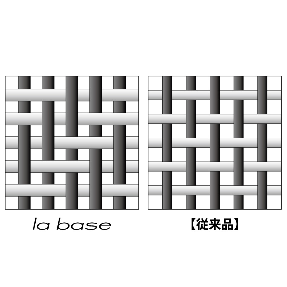 ざるのアミは一度綾に織ったアミ(綾織り)なので、従来のザルより丈夫で、パンチング材のザルと比べ水切れがよい