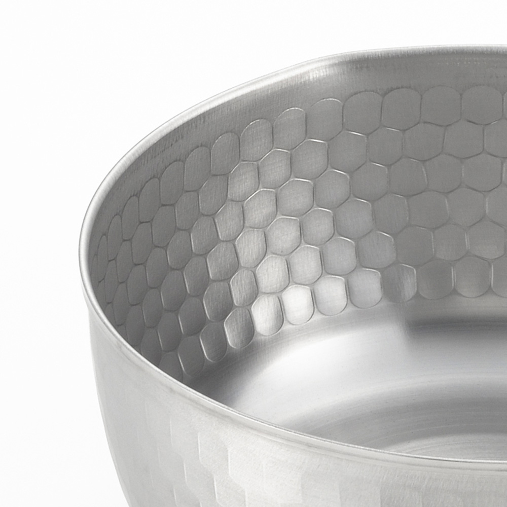 昔ながらの「打ち出し」をイメージした槌目(つちめ)模様。表面積が多くなり、熱の伝わりを早める効果も。