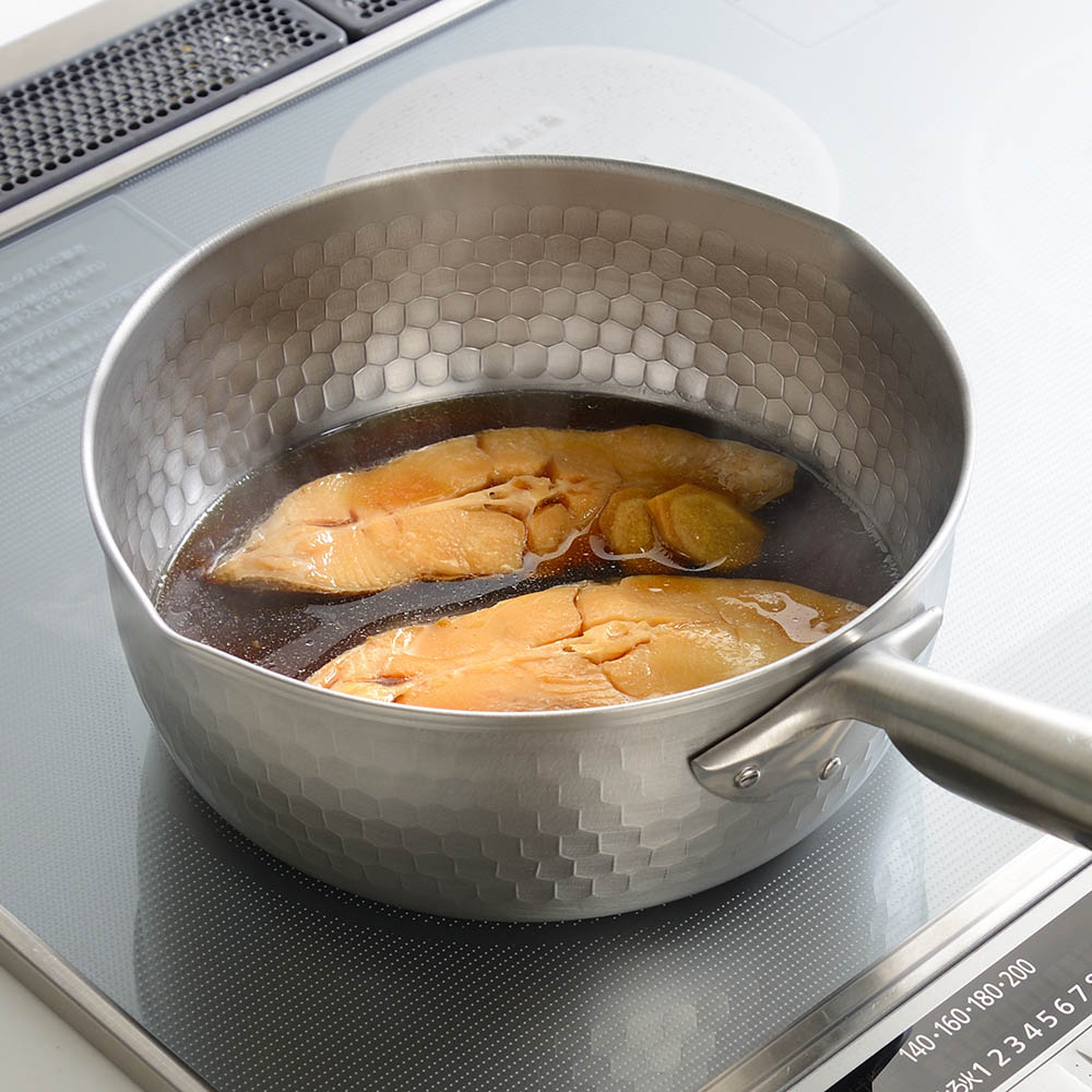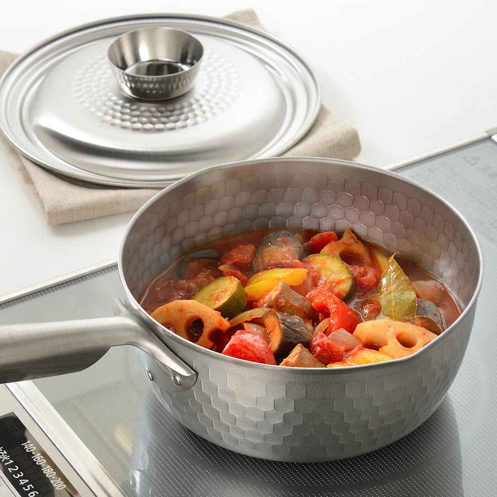 日本生まれの万能鍋「雪平鍋」。丈夫なステンレス製で、ニオイも色も移りにくく、長くお使いいただけます。IHにも対応。