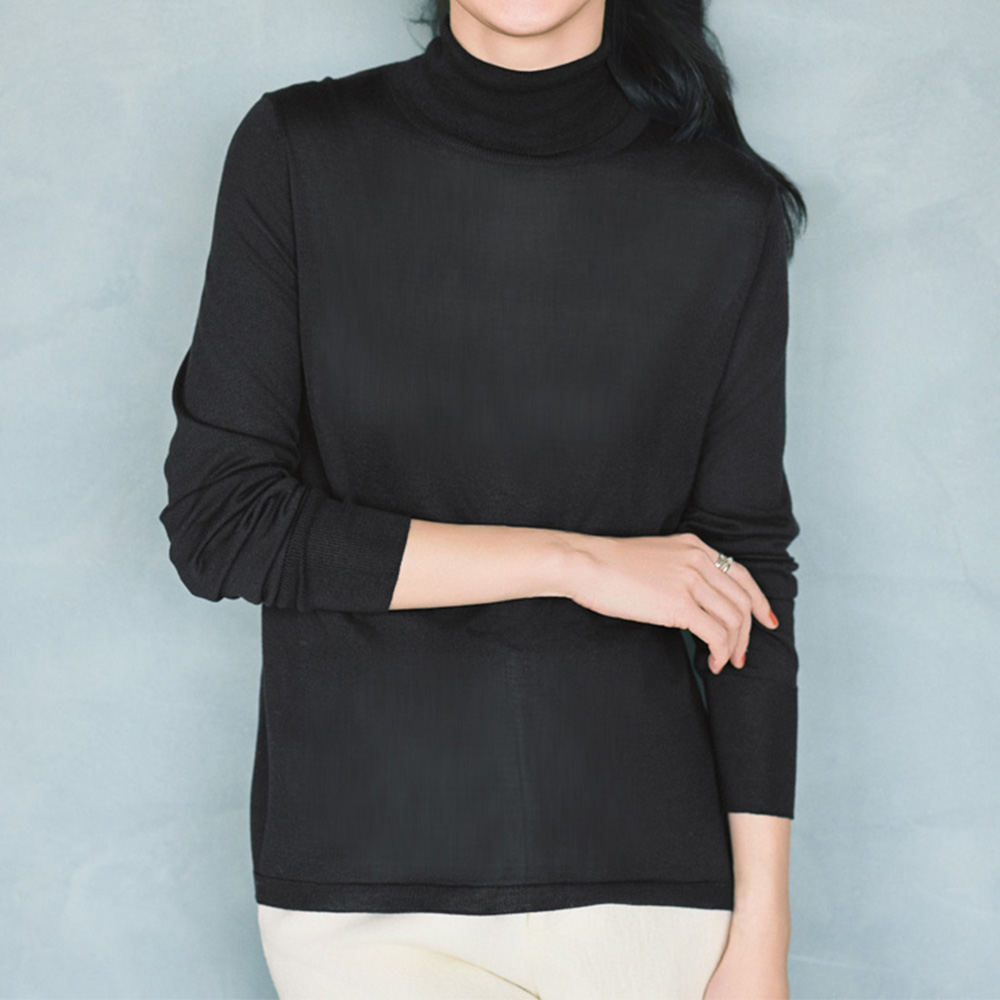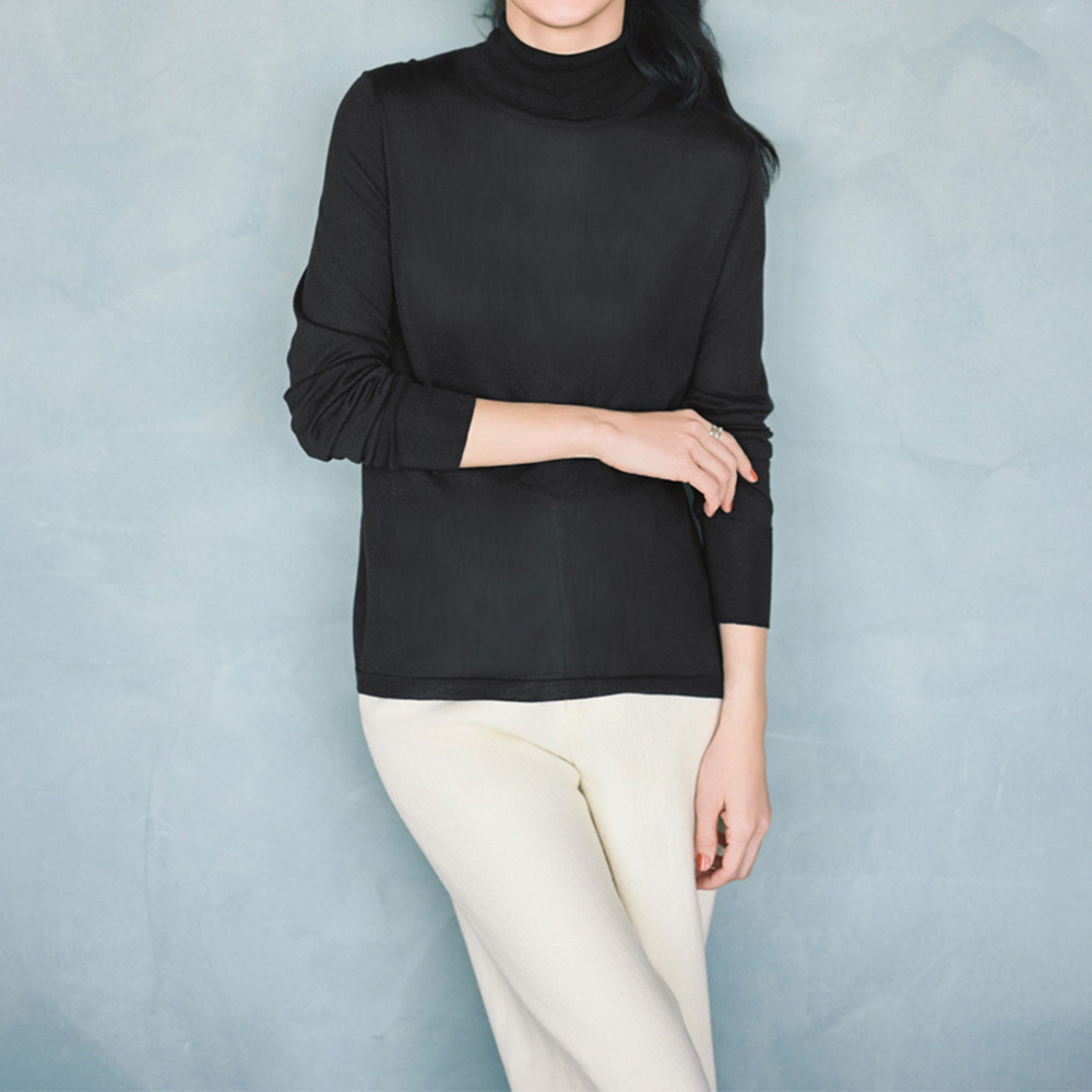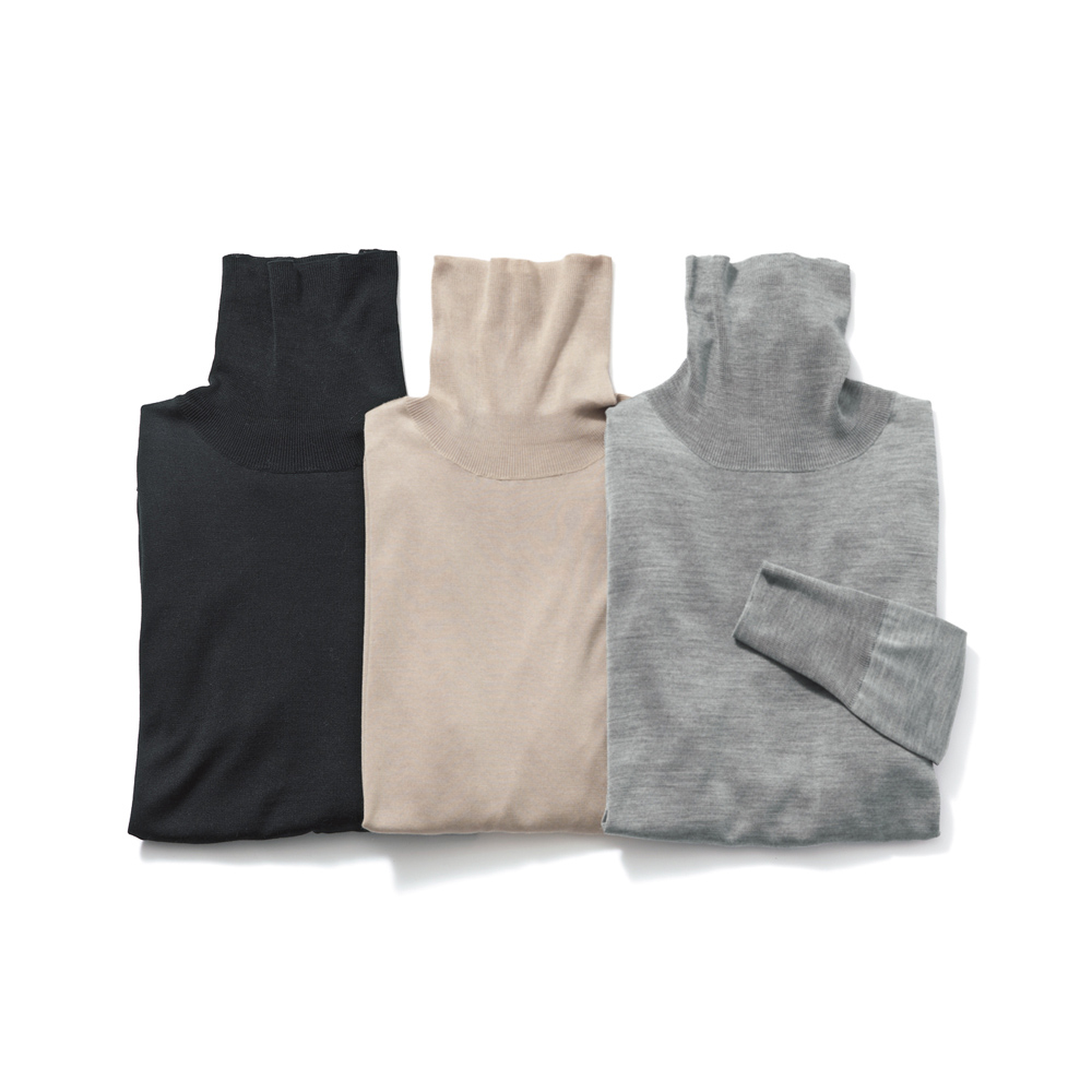 素肌よろこぶ、シルクの心地よさを肌に近いものこそ上質な天然素材で。美しい光沢、とろける肌触りで、しっとりと癒やされる着心地を叶えます。ちょっと贅沢なシルクニット。高評価にリピーターも続出です。着映えと着回し力で多くのファンを魅了する、ハイゲージのシルク100%ニット。滑らかなタッチ、シルク本来の持つ通気性や吸放湿性をデイリーに使えるベーシックなデザインで。美しい艶と発色を堪能できる定番色の展開です。タートルネック部分は細リブですっきりと。首元に柔らかくフィットします。