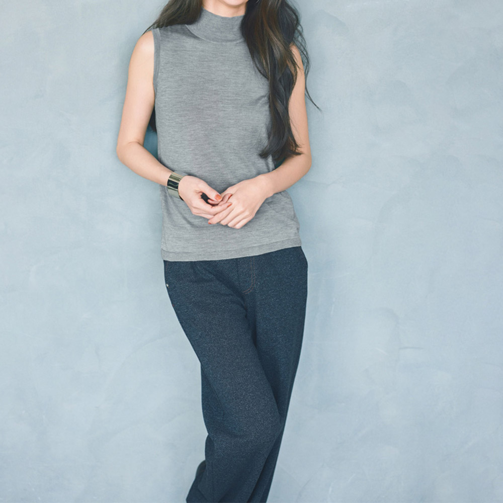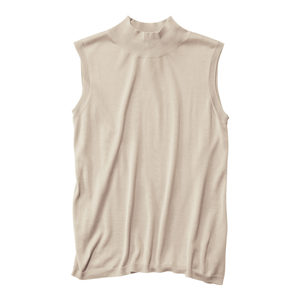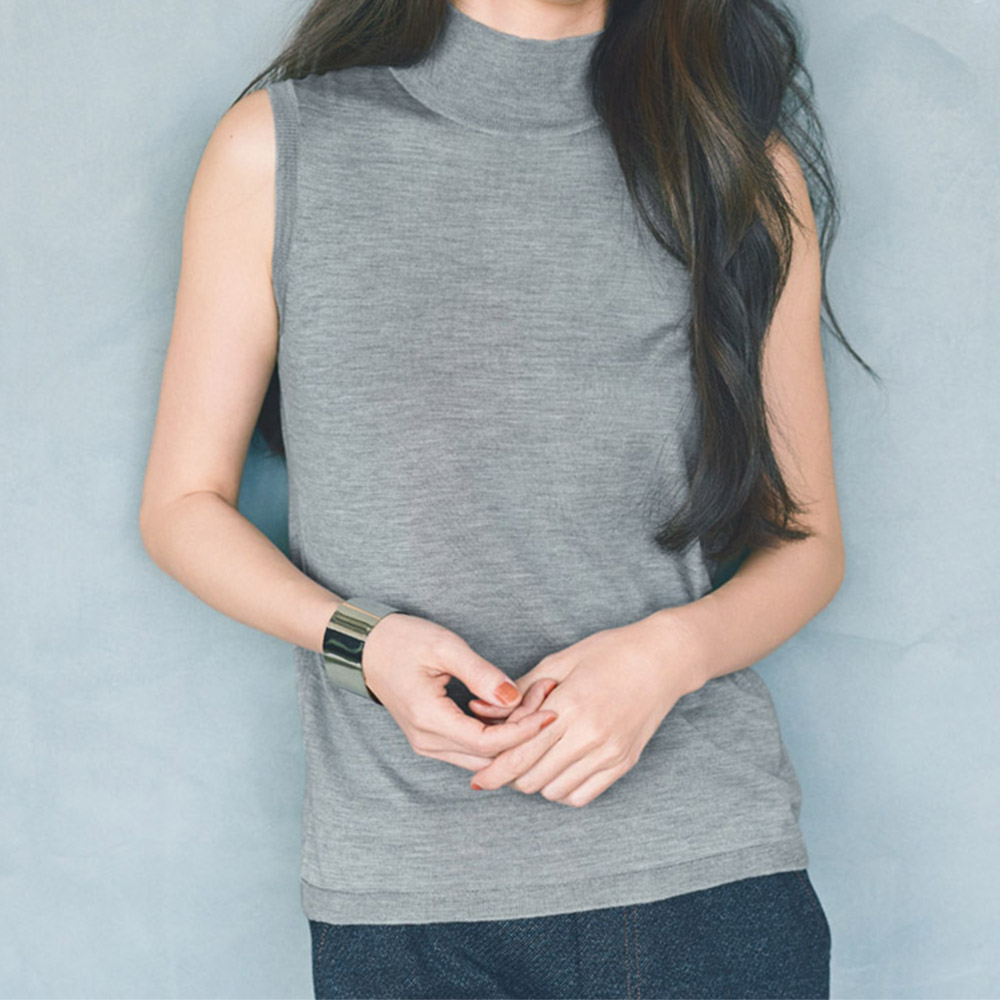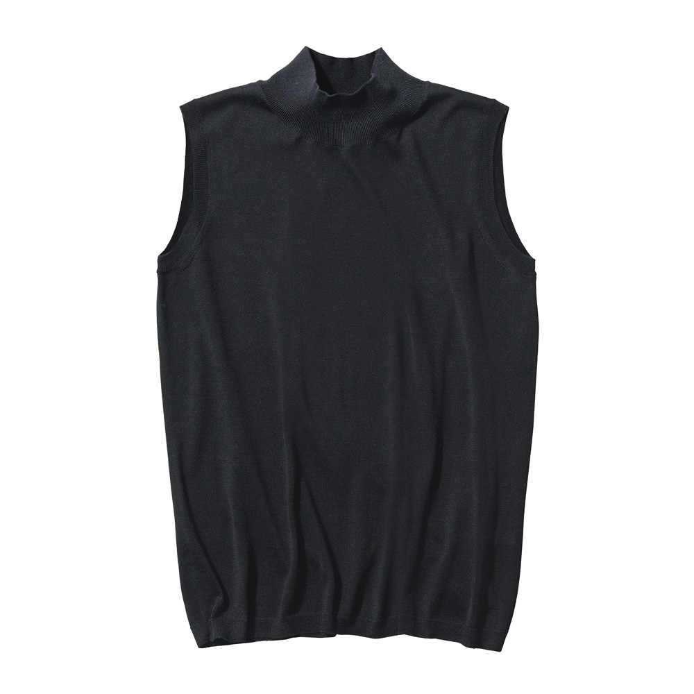 素肌よろこぶ、シルクの心地よさを肌に近いものこそ上質な天然素材で。美しい光沢、とろける肌触りで、しっとりと癒やされる着心地を叶えます。ちょっと贅沢なシルクニット。高評価にリピーターも続出です。着映えと着回し力で多くのファンを魅了する、ハイゲージのシルク100%ニット。滑らかなタッチ、シルク本来の持つ通気性や吸放湿性をデイリーに使えるベーシックなデザインで。美しい艶と発色を堪能できる定番色の展開です。低めのハイネック、肩幅を広くとった“大人のノースリーブ”は、季節を問わず活躍。