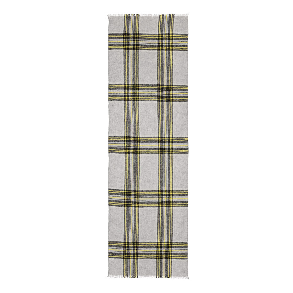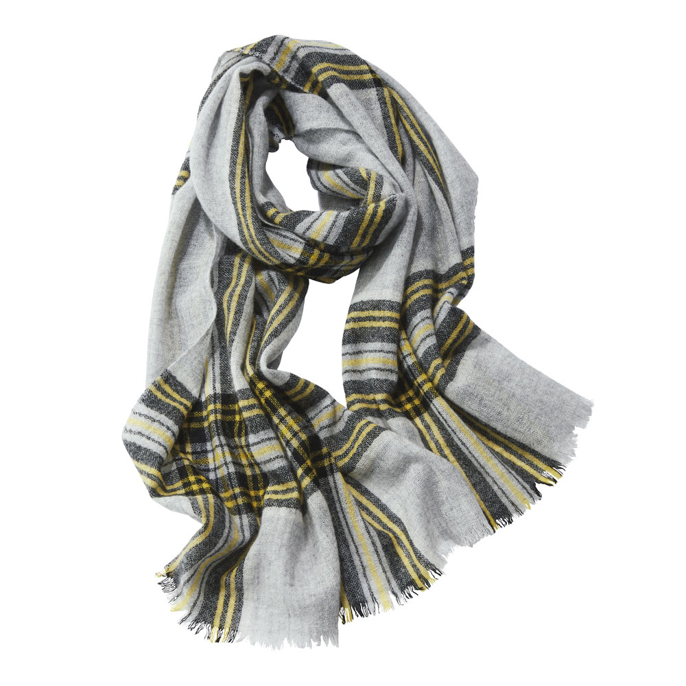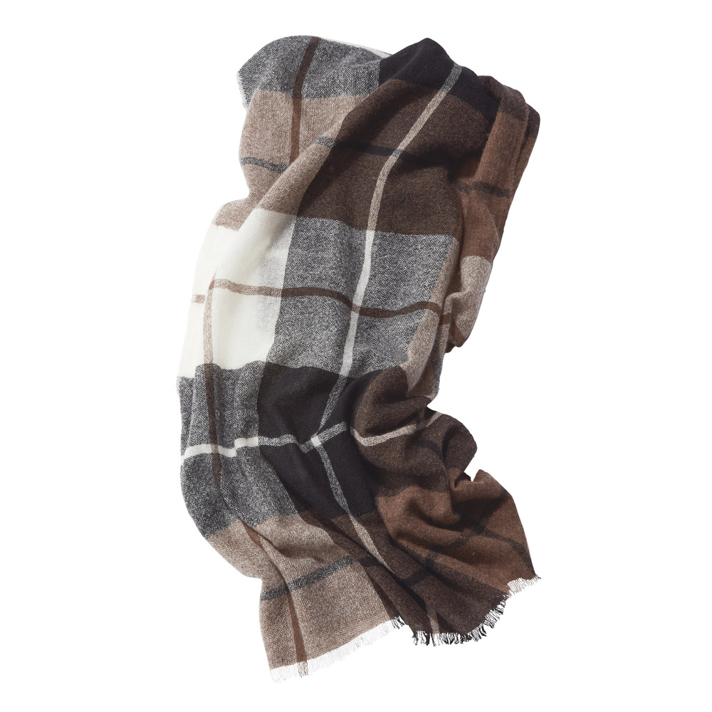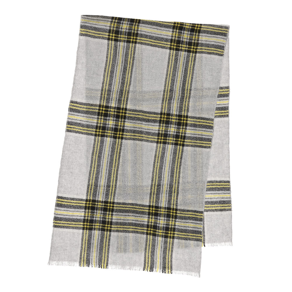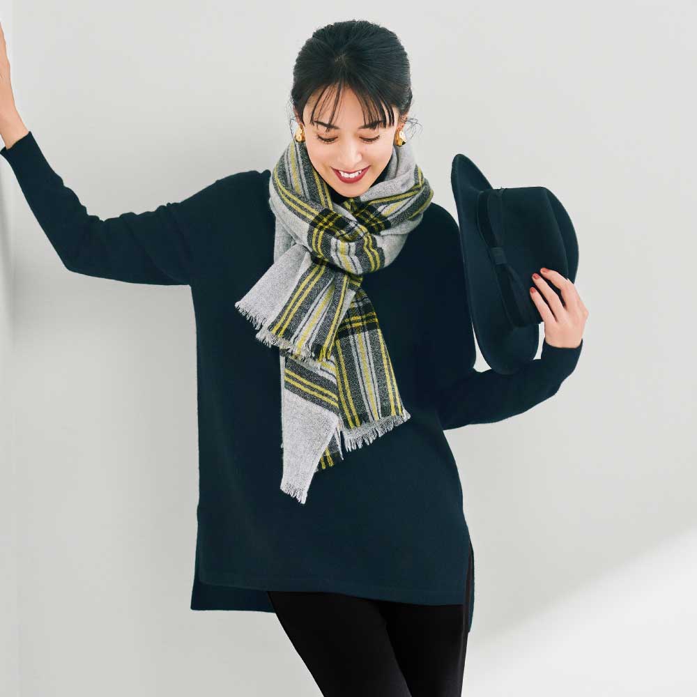 FASHION GOODS“旬”を盛り込んだ冬の小物リストこれからの季節に役立つ巻き物。今っぽさを手軽に楽しめるのはもちろん、使いやすさにも拘り抜いたアイテムです。好感度の高いチェック柄と上質な薄手カシミヤの調和装いにスパイスを添えたいとき、つい手が伸びるチェックのストール。肌に心地いい薄軽カシミヤガーゼなので、大判サイズでも扱いやすく、アレンジしやすいのも利点。新色のブルー系を加えた全3色展開。