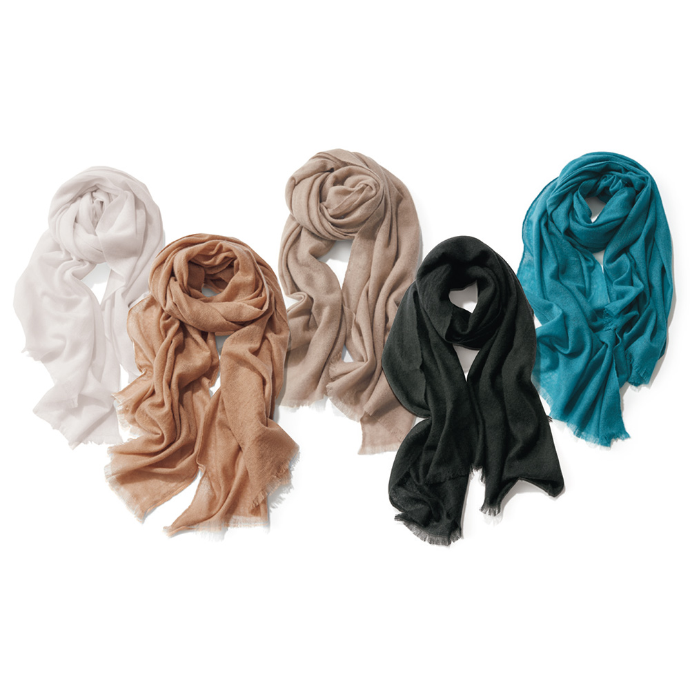 MUST BUY ITEMS春アイテムを手に入れるチャンス到来!今回の「マストバイ」はリーズナブルプライスをご紹介。気になっていたアイテムを、この機会にぜひ。薄く巻きやすいガーゼ調カシミヤストール春の兆しを感じる時季も手放せない、甘織りのふわっとエアリーなカシミヤストール。厳選された内モンゴル産ホワイトカシミヤを、撚糸回数を極限まで減らし低温染色。ゆっくりと織り上げることで生まれるカシミヤ本来のとろけるような風合いにうっとり。色は大人の装いを引き立てるベーシックカラーと肌に優しく映えるペール系きれい色をセレクト。色違いで揃えれば、コーディネートの幅が一気に広がります。