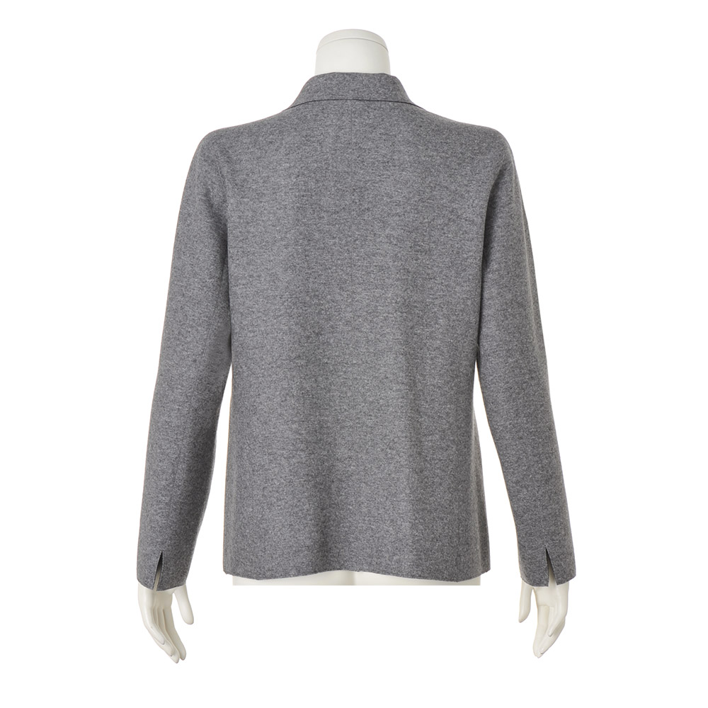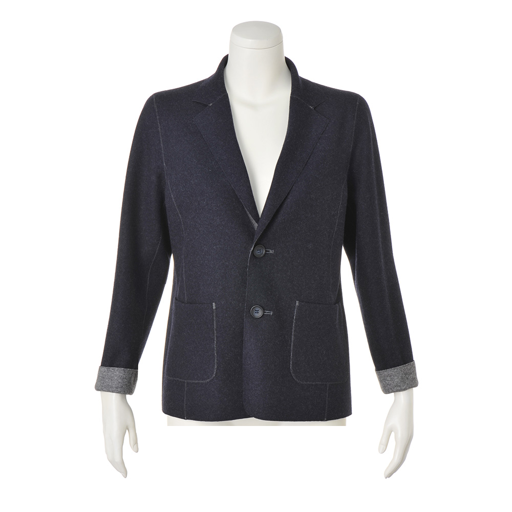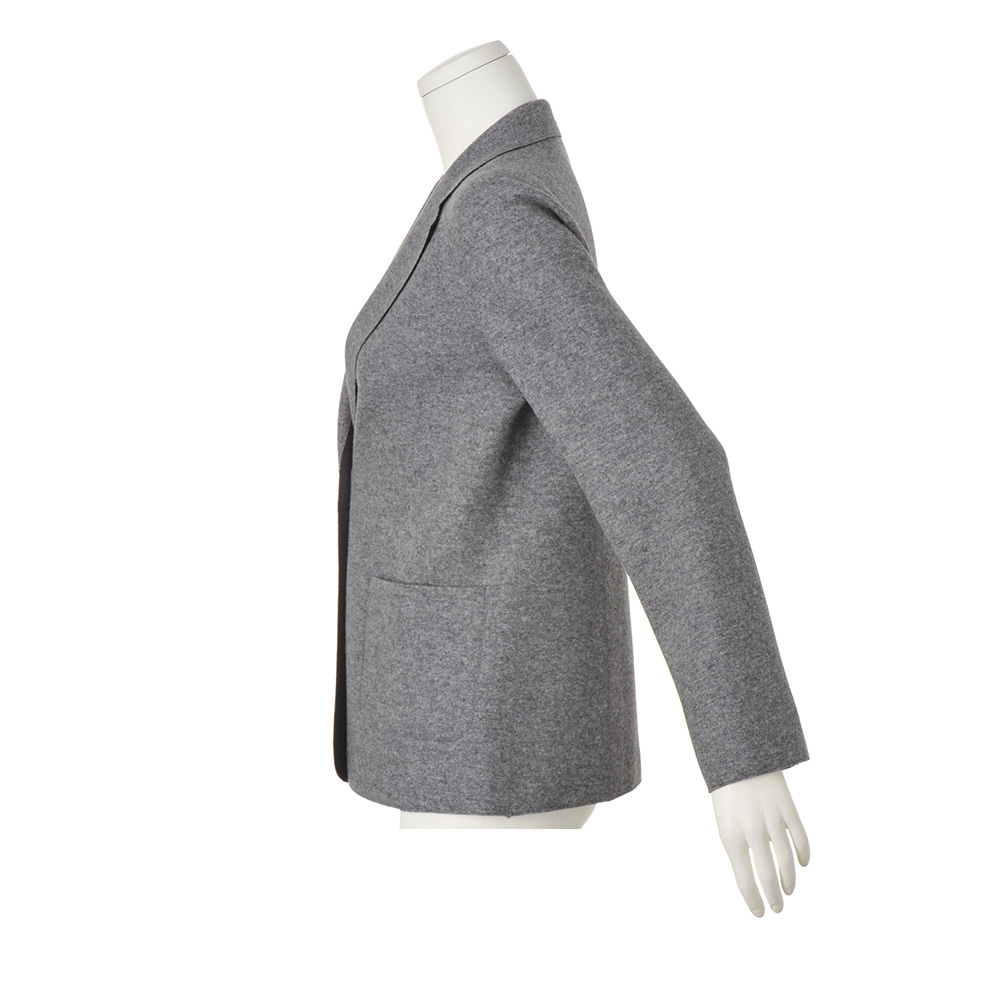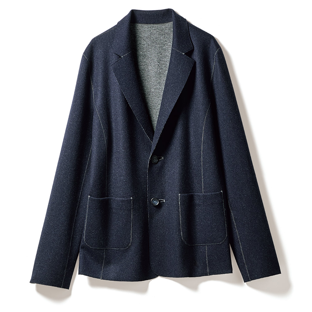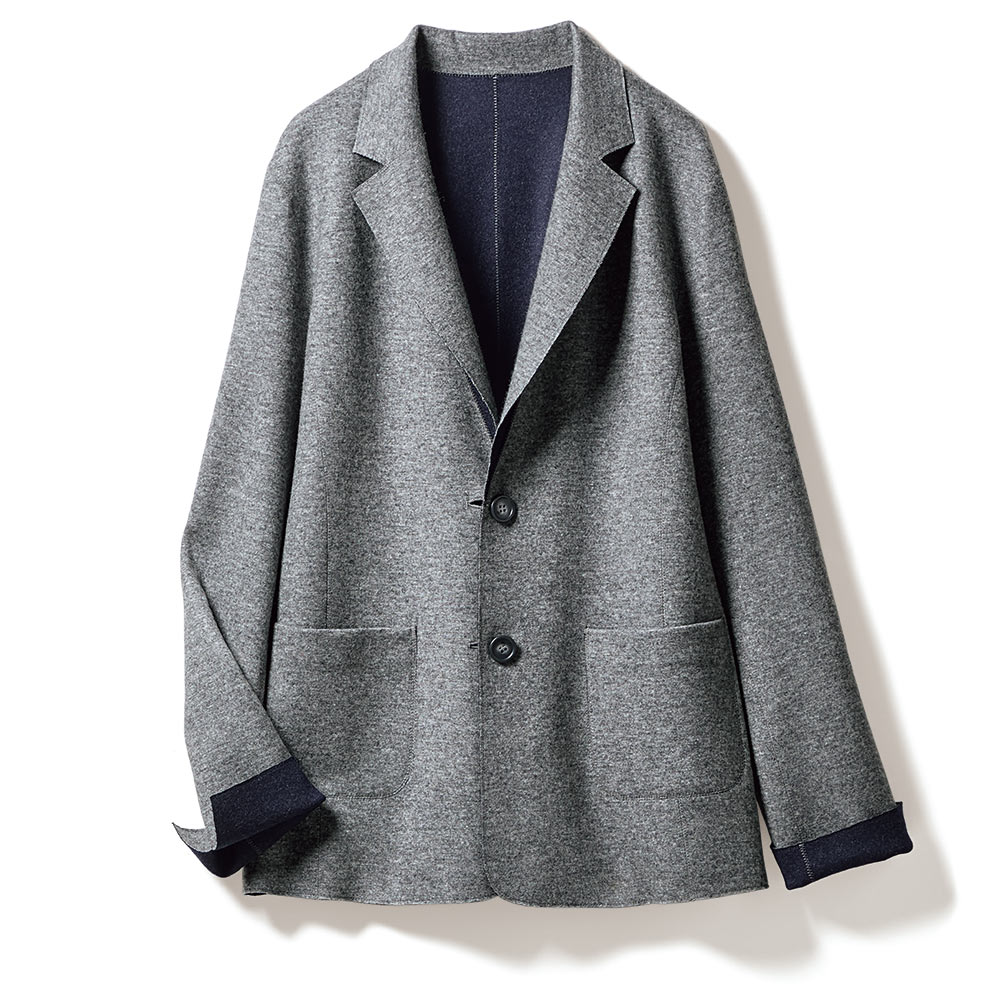 本物を装うお洒落の成熟を語る逸品。豊かに経験を重ねた大人がたどり着く、洗練の本質を語る服、「本物」。ラグジュアリーと真摯に向き合い、誕生したアイテムをお届けします。大人の余裕で着こなすエフォートレスな端正美。端正なジャケットもリラクシーに着るのが新常識。それを叶えてくれるのが、伸びやかで軽く、暖かなウールカシミヤのメランジグレー×ネイビーのダブルフェイスジャージー。生地を突き合わせて千鳥ステッチで縫い上げる「TPS(ツインプロファーシーム)」縫製で仕上げているから、ストレスフリーな着用感で、どちらを表にしても着られるリバーシブル仕様が実現。「魅せ方」にも拘って、襟部分は折り返した時に身頃と同色に出るように、袖口はスリットを入れて折り返して配色を楽しめるように計算。着慣れたはずのシックカラースタイルに新風を吹き込むエンパワメントな存在感にときめきます。≫ POINTTPS縫製にはグレーの糸を使用。グレー面はトーンonトーン、ネイビー面は配色、とデザイン的なアクセント効果も発揮しています。