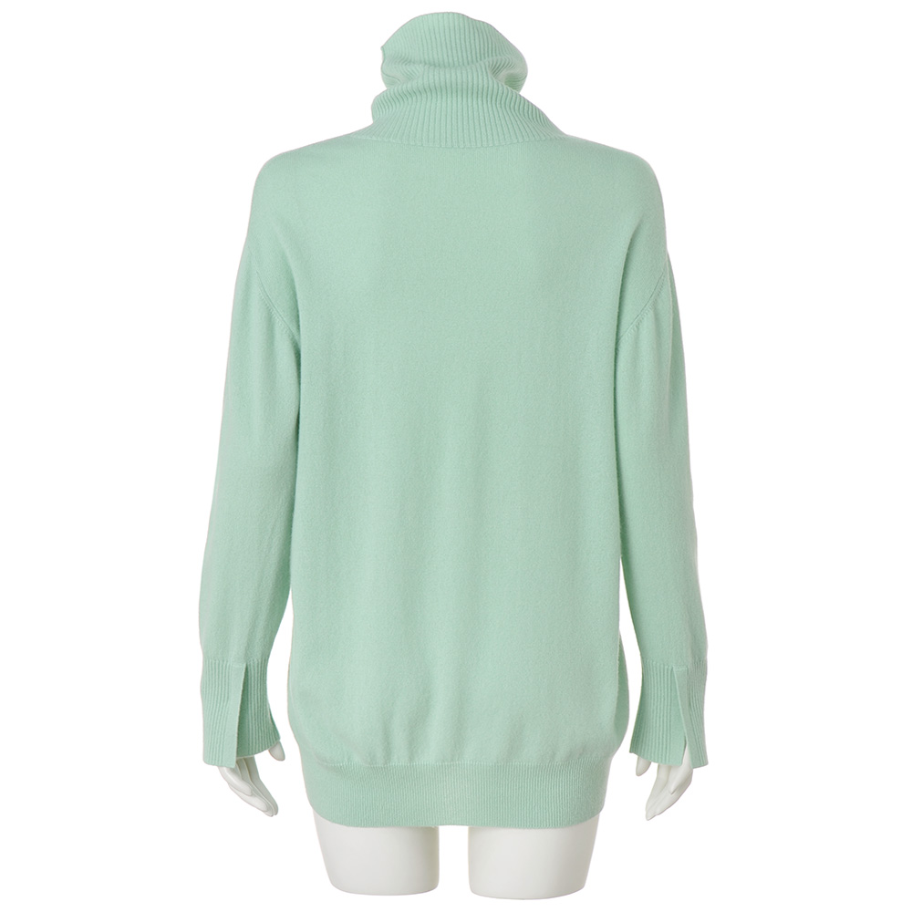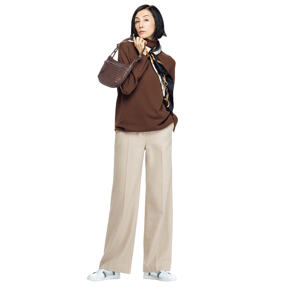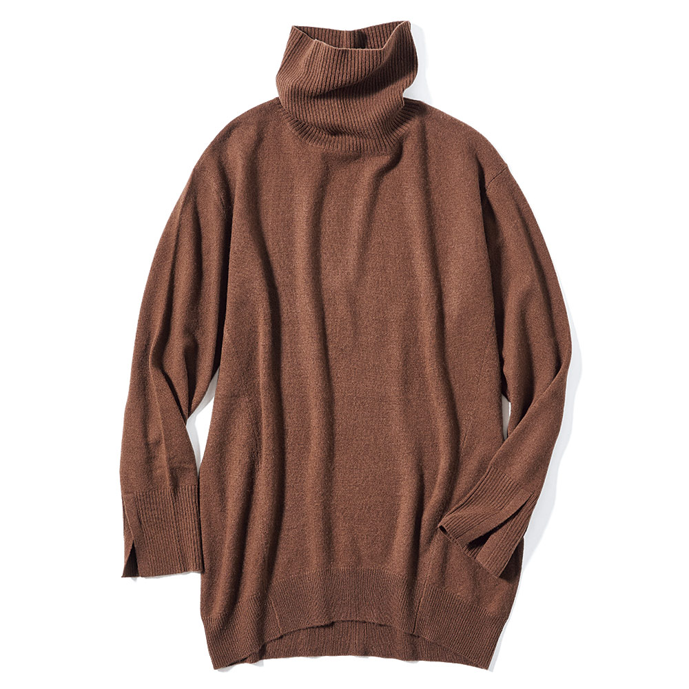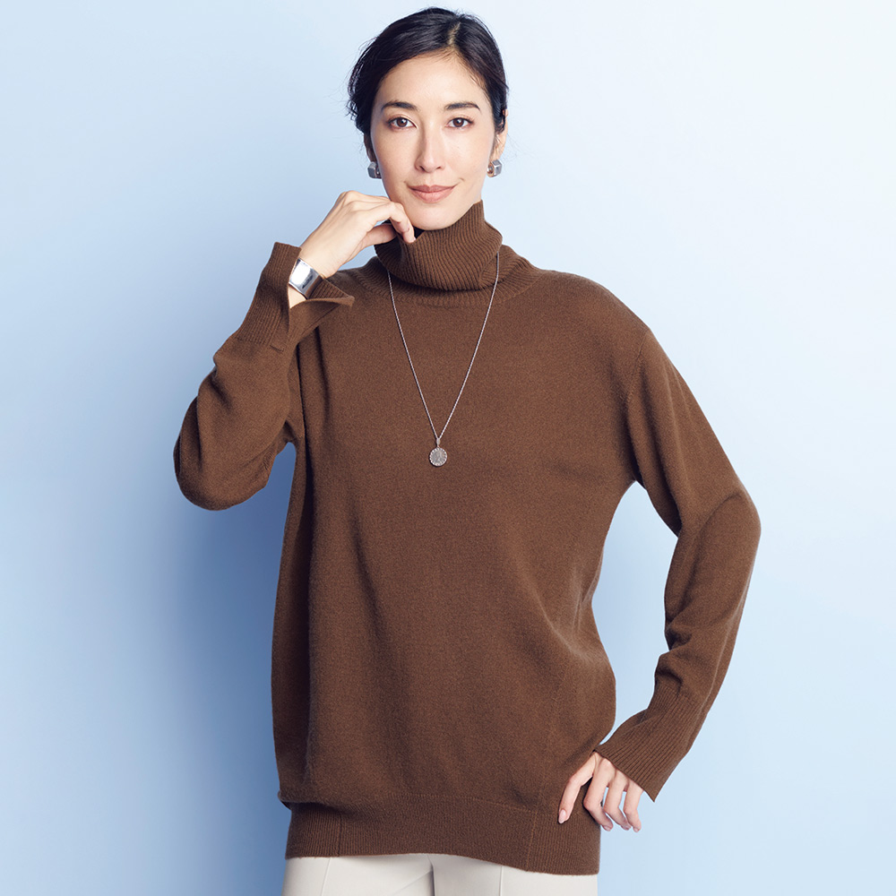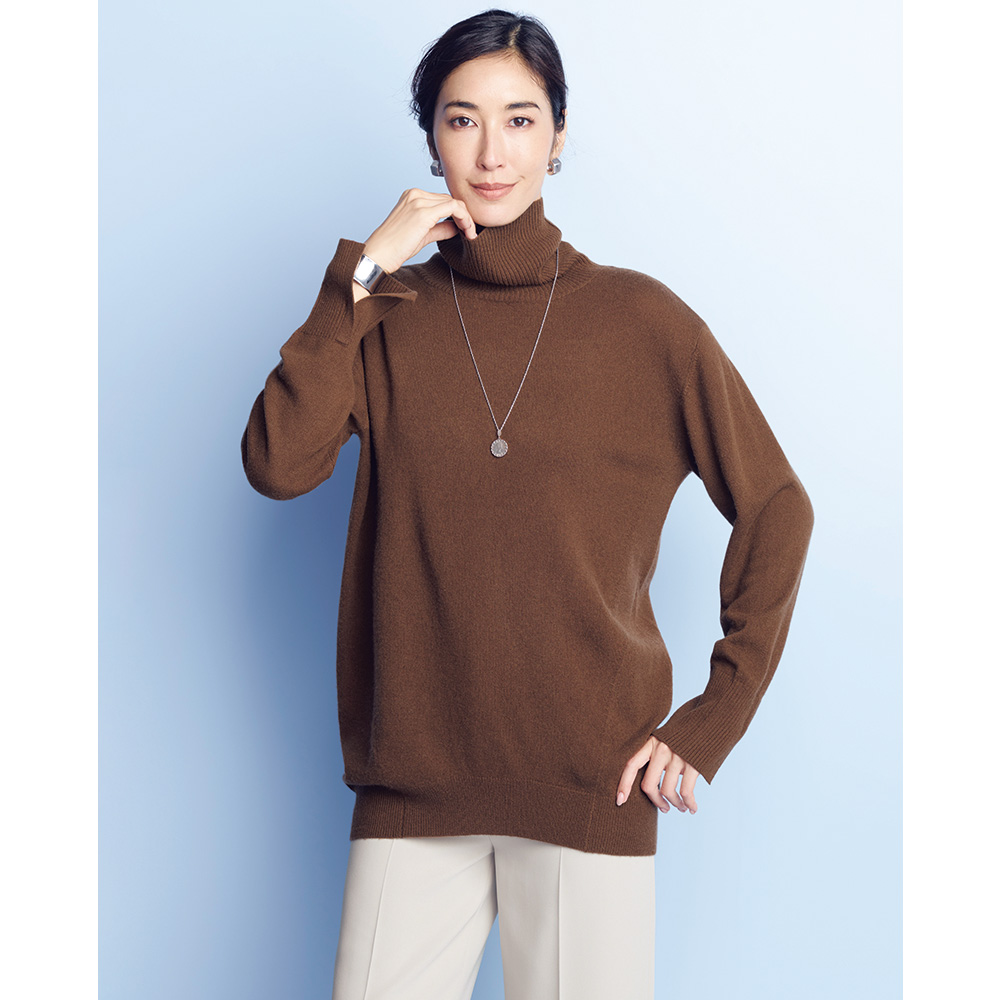 ブラウンのニットが都会的なシックを穏やかに物語って。コーディネートを品良く仕上げるのに欠かせないのが、上質素材のベーシックアイテムです。原毛の白度に拘ったウールカシミヤ素材のニットはその好例。ふんわり優しい肌触りにふさわしく、洗練されたリラックス感を醸すシルエットを意識。ゆるやかなタートルネックや身頃脇線を前振りにした立体的なコクーンシルエット、抜け感のあるベント入りの袖口でニュアンスたっぷりに仕上げています。ブルーに合うビターブラウンとピンクに合うオフホワイトの2色が新登場です。≫ POINTテクニックいらずで旬のフォルムが手に入るニット。袖口のベントが小粋な抜け感を演出します。