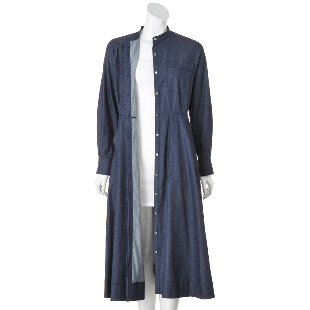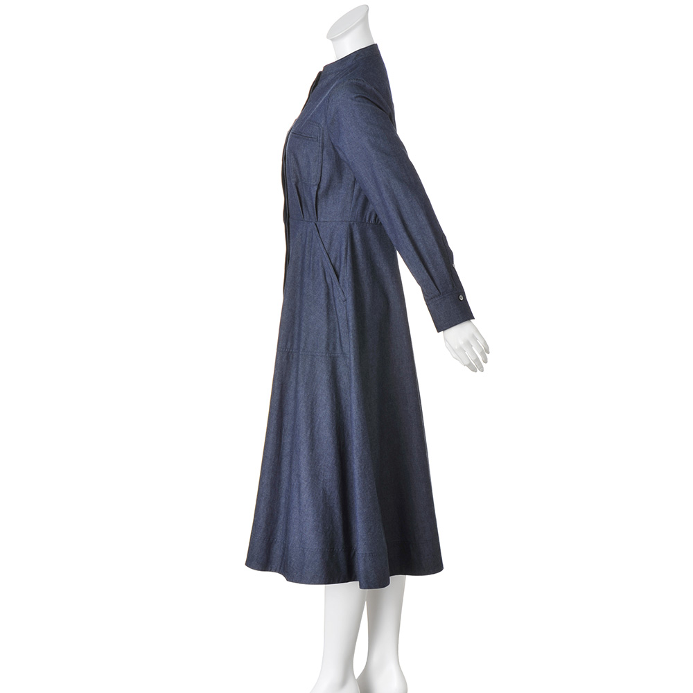 新基準で更新する、洒脱なスタイル。本物を知る大人にふさわしいのは、これ見よがしに華美な装いではなく、時代の息吹を軽やかに、肩肘張らない上質さを感じさせる最新カジュアル。リュクスなデニムが導くカジュアルの新解釈。軽やかな5オンスのデニムで仕立てたフェミニンなワンピース。素材は、世界から信頼を集めるジャパンメイドのデニムを使用。深みのあるインディゴの染色が美しく、ソフト加工を施した生地は、優しい肌あたりで着心地も快適です。