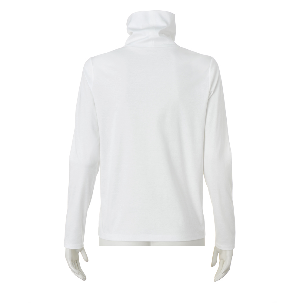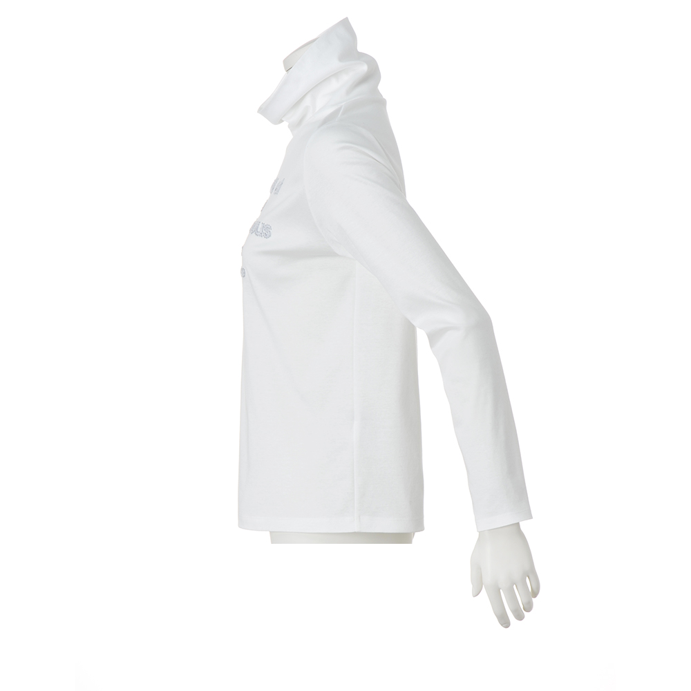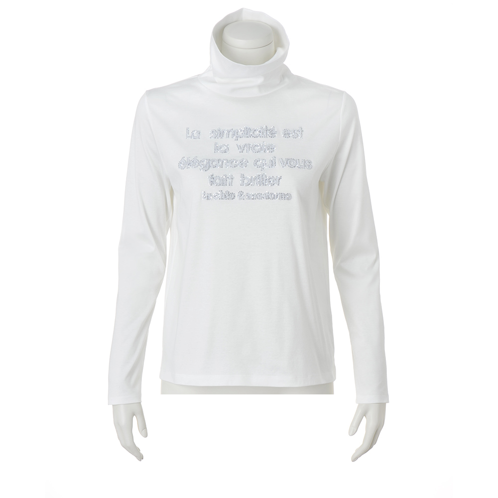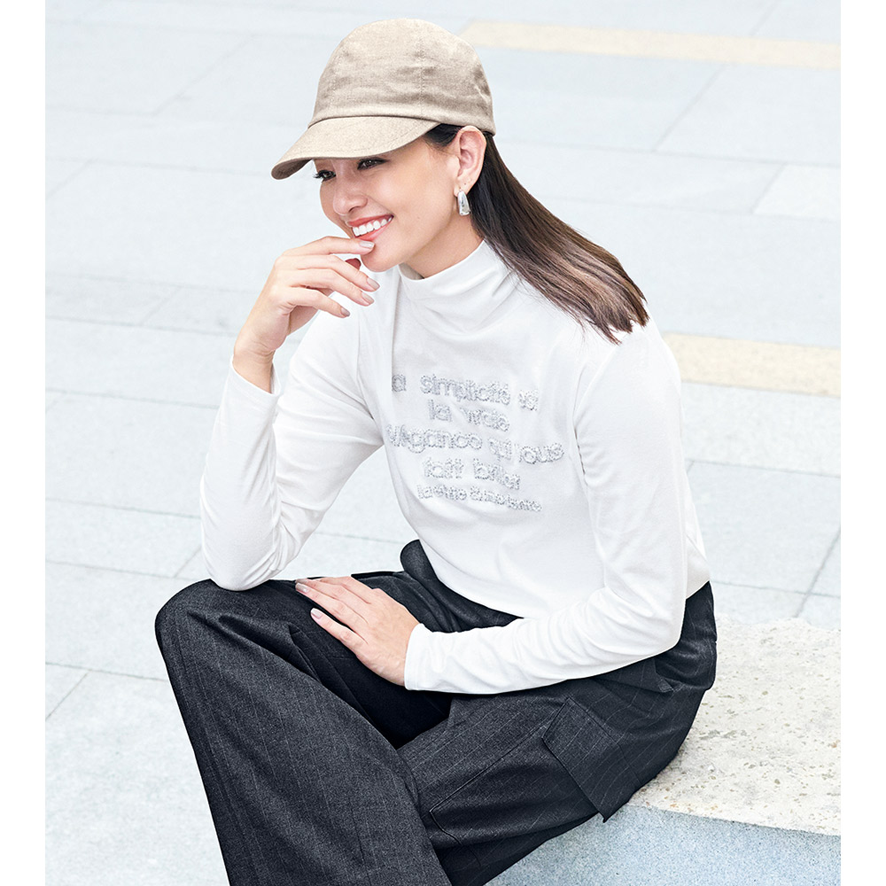 アクティブに輝く!スマートスタイル陽射しに誘われて出掛ければ、風が心地よく感じられて――。端境期をアクティブに過ごす、洗練スタイル。ワントップで着てもフォトジェニック。レイヤードに欠かせない白のタートルを、素肌にも心地よいスーピマコットンでご用意しました。上質なスーピマ超長綿を極細糸で丁寧に編み立てたスムース生地は、毛羽立ちを抑える加工を施して、しっとりと滑らかな肌触りを実現。ロゴはループ状でふわふわと厚みのあるサガラ刺しゅう。ロゴの縁には小さなシルバーのスパンコールを添えて、輝きのエフェクトをプラスしました。