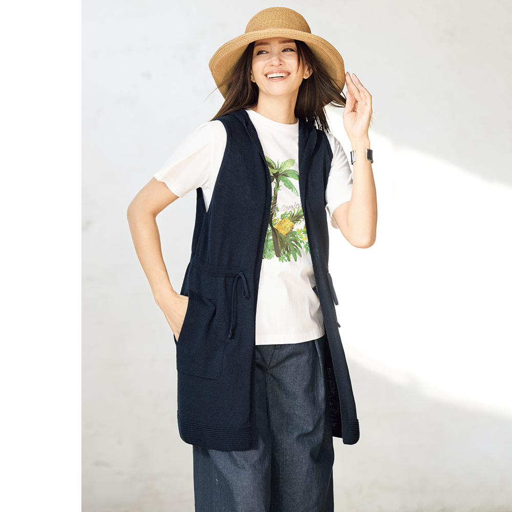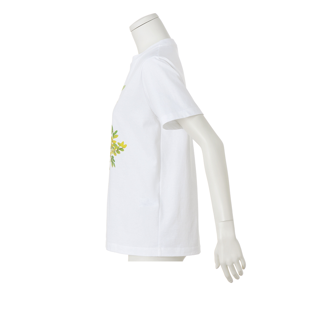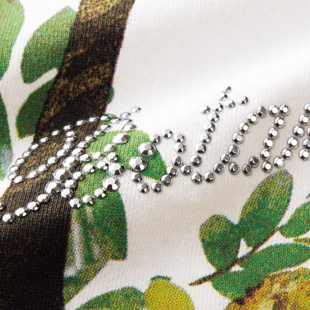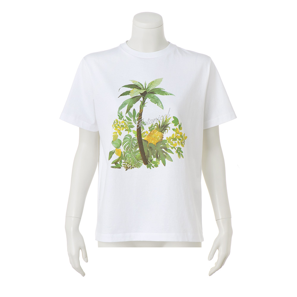 Botanical Chicトレンド継続のグリーンと、延長線上のアーシーな色合い。みずみずしさが香る“ボタニカル”なスパイスがフレッシュなときめきを運んできます。ヘルシーコーデにニュアンスを添えて装いがシンプルになりがちな、これからの季節。夏気分が盛り上がるプリントTシャツをご紹介。トロピカルな柄にシルバーカラーのメタルロゴをあしらい、バカンスでもタウンでも活躍するデザインにしました。素肌が喜ぶコットンフライス素材、ジレとバランスの良い丈感など美点が多数。≫ POINTボタニカル柄のプリントはDAMAコレクションオリジナル。テレコ素材のパイピングを施したきれいなクルーネックです。