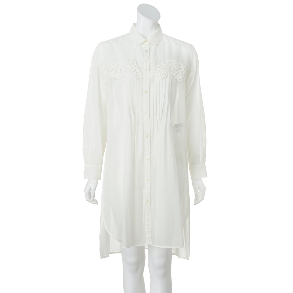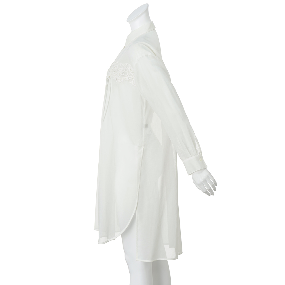 レース使い コットンオーガンジー ロングシャツ シャツ ブラウス 167802