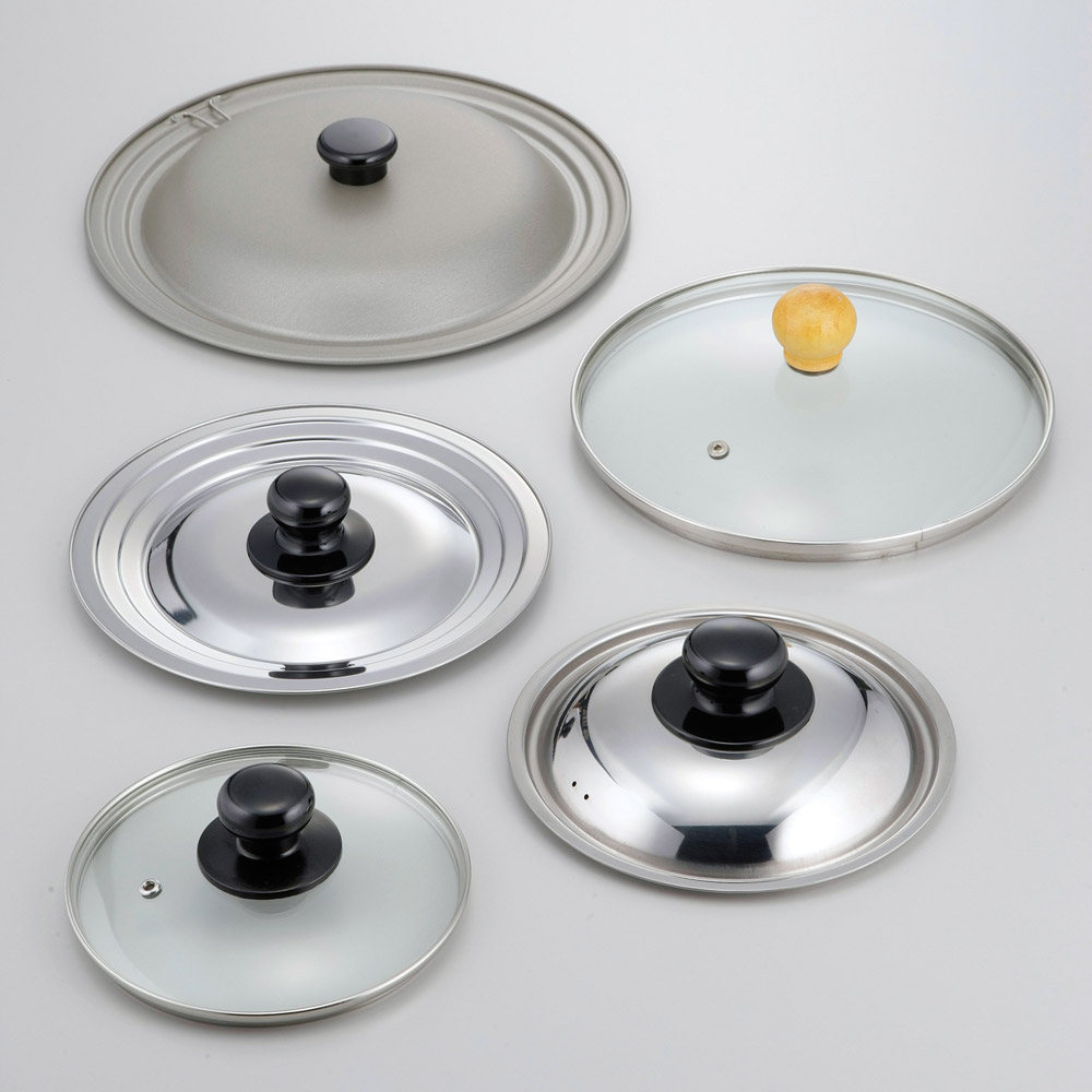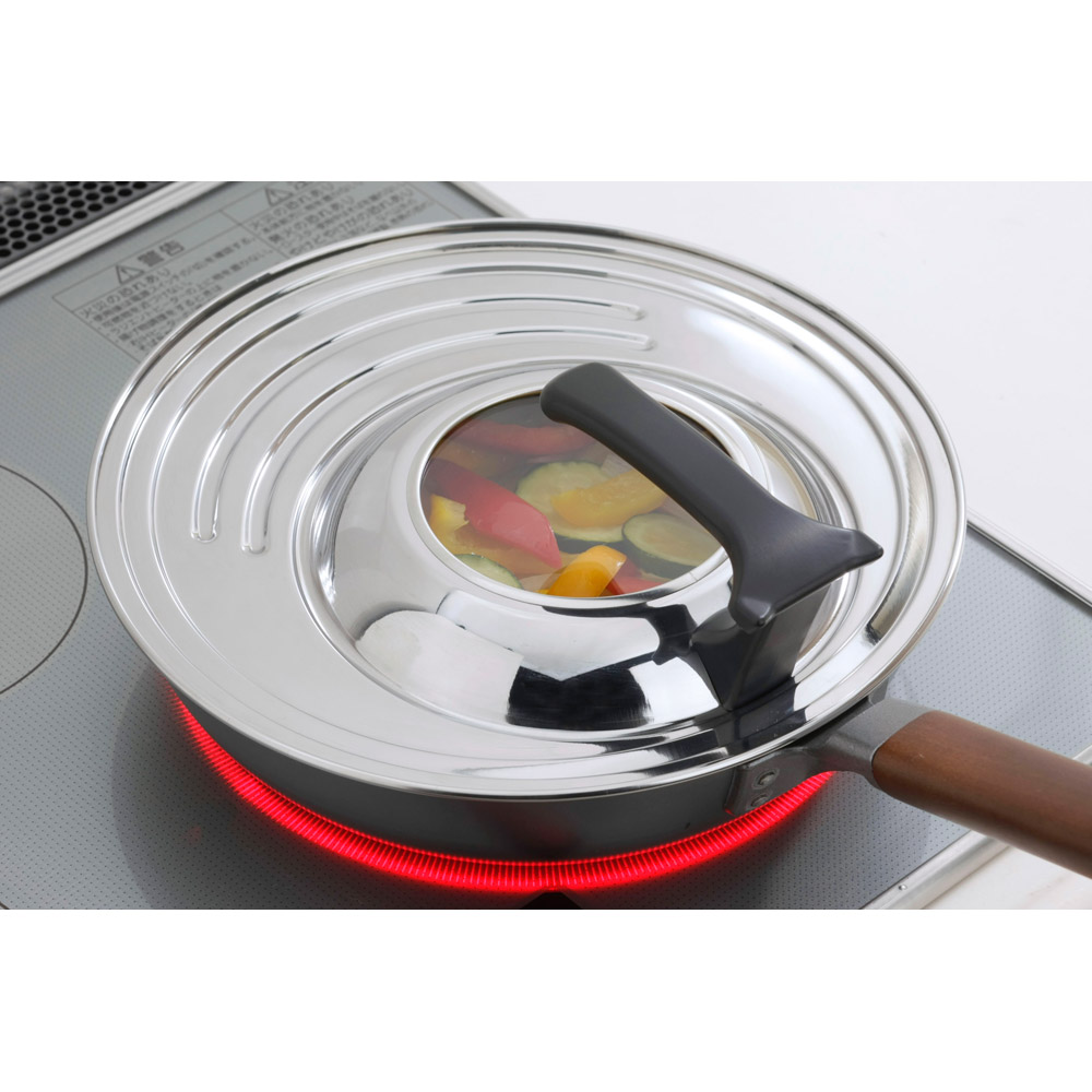 18〜26cmのフライパン・鍋をこれ1つでカバー。18・20・22・24・26cm対応。それぞれのサイズにぴったりハマる溝が付いているので安定して置けます。窓付きなので、調理中の中身が見えて安心。サッと立てられるスタンド式なので置き場に困らず、コンロ周りがすっきり。調理も手際よく進められます。鍋やフライパンのフタは意外と収納場所をとってしまうもの。複数の鍋・フライパンで併用できるこのフライパンカバーなら、引出しの中もすっきりします。