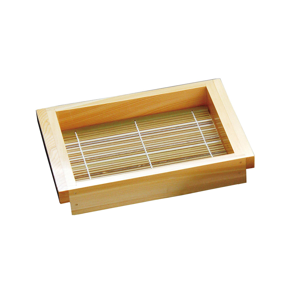 ひのき材を使った日本製板そば。蕎麦、うどん、天ぷら等の盛り付けに。●桧(ひのき)を使用した長方形のそばを美しく盛り付ける器、板そばです。蕎麦、うどん、天ぷら等の盛り付けにぴったりです。●竹すだれを外せば料理箱としてもご使用いただけます。お刺身などの御作りや前菜を入れるとまるで料亭のような美しさです。●積み重ね可能で収納に便利です。●安心の日本製です。