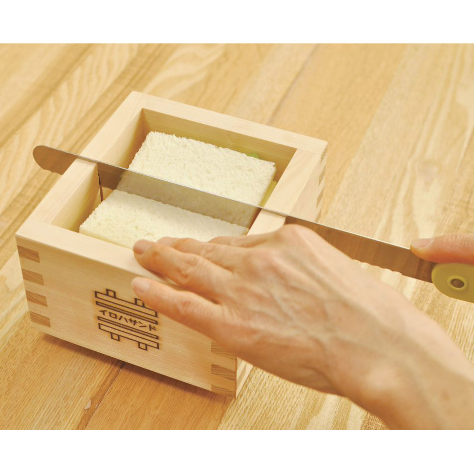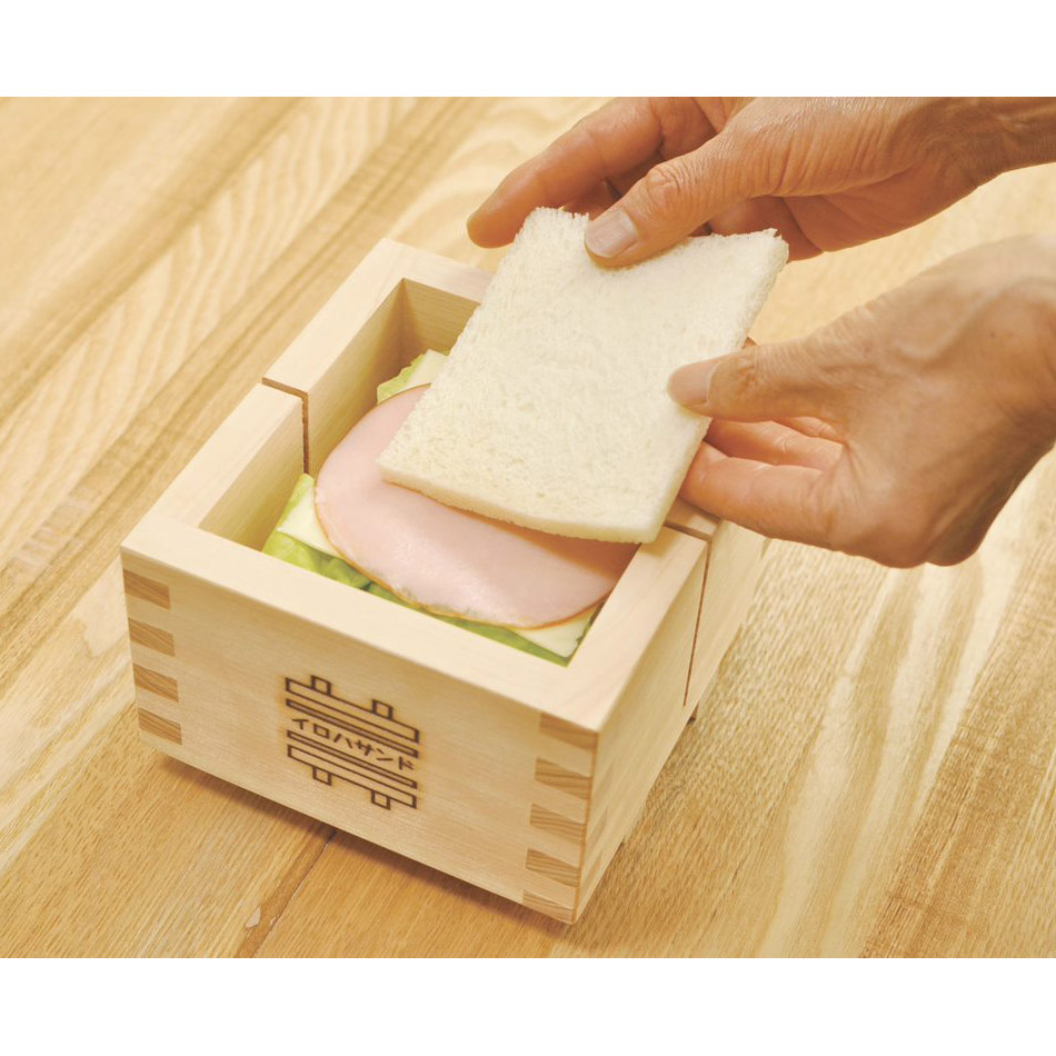 厚みのあるサンドイッチや、おにぎらずもきれいに作れる国産ヒノキと使った型です。●具沢山のサンドイッチ作りに。たっぷり入れてもパンや具材がズレず、まっすぐきれいに切れます。流行の果物たっぷりのフルーツサンドも簡単につくれます!●パンと好きな具材を順番に入れ、フタで押してから包丁で切るだけ。スリット(溝)が入っているので包丁やパン切り包丁で厚みのあるサンドウィッチでもきれいにまっすぐに切れますよ!●とっても簡単なのでお子様と一緒にワイワイ楽しみながら作ることもできます!●ご飯を入れて押し寿司やおにぎらず作りにもおすすめです!●国産のひのき材を使用しています。日本人にお馴染みの枡や押し寿司の型などを50年間生産している老舗の岐阜県の職人が「枡組み」の技術を用いて丁寧に作っています!