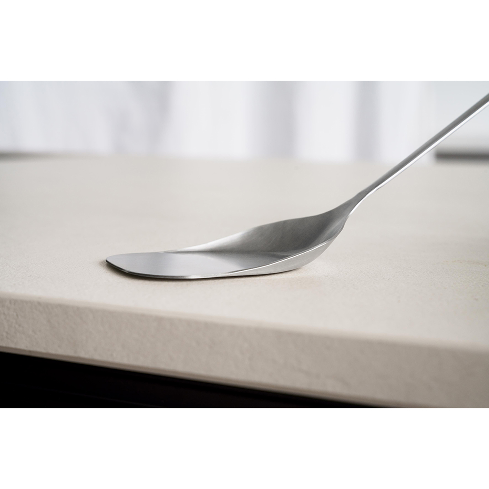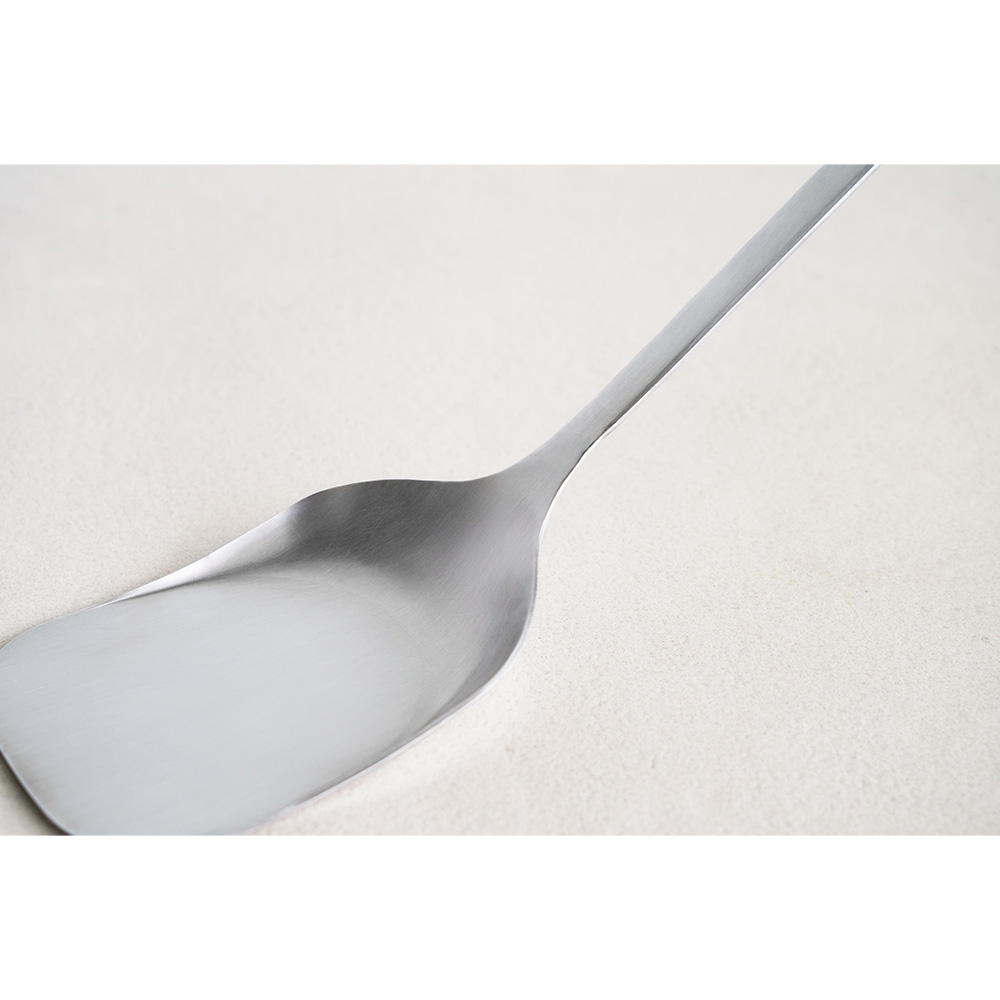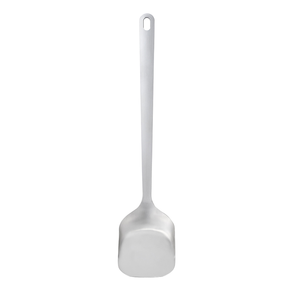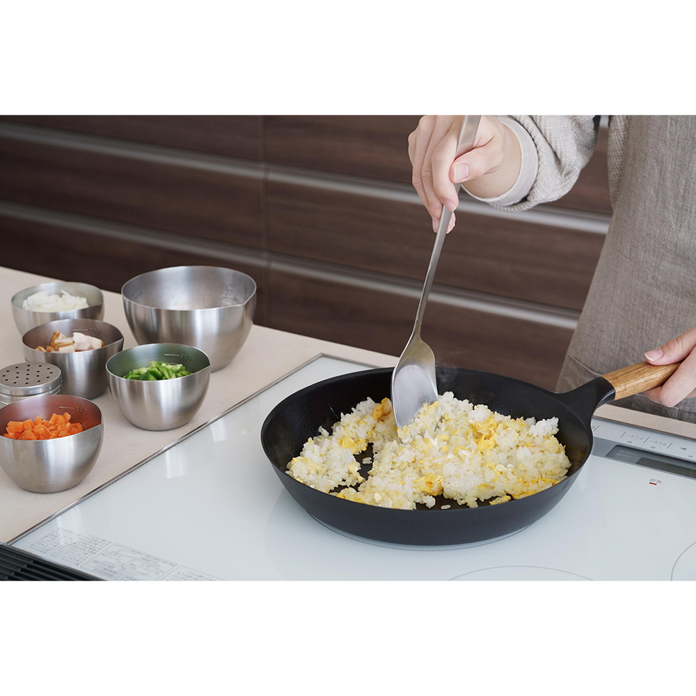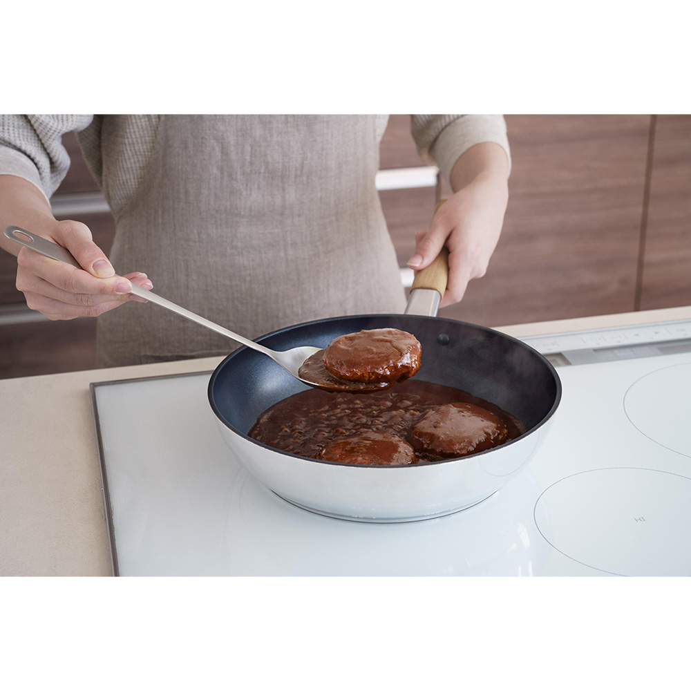 調理にも盛付けにも便利。煮込みハンバーグもソースごとすくえます。チャーハンを作る際、ヘラのようにお米をほぐしたり炒めるのに便利です。スコップのように立ち上がりがあるので麻婆豆腐や八宝菜など汁気のあるものもすくえます。調理から盛付けまでできて、ハンバーグはソースごとすくうことができます。つなぎ目のないステンレス一体型なので洗いやすいです。※フッ素樹脂加工製品を傷つける場合がありますのでご注意ください。