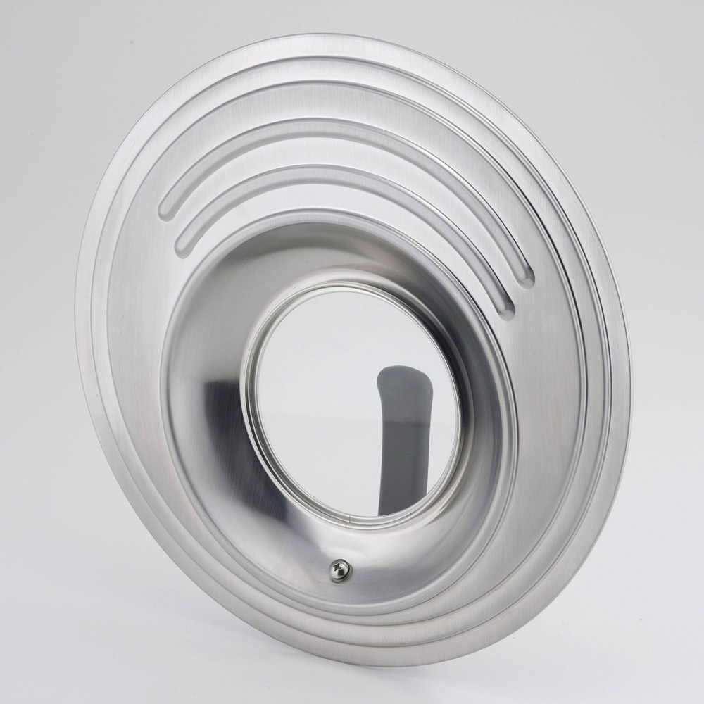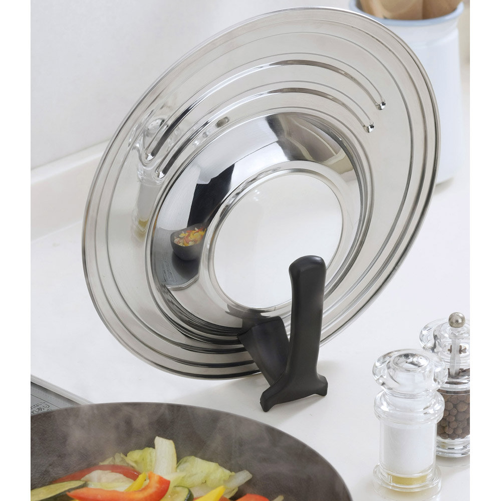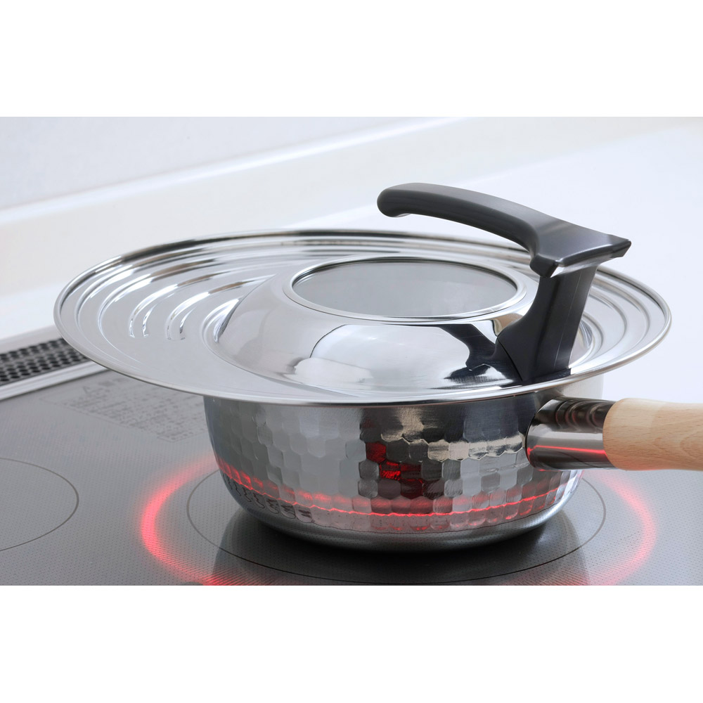 18〜26cmのフライパン・鍋をこれ1つでカバー。18・20・22・24・26cm対応。それぞれのサイズにぴったりハマる溝が付いているので安定して置けます。窓付きなので、調理中の中身が見えて安心。サッと立てられるスタンド式なので置き場に困らず、コンロ周りがすっきり。調理も手際よく進められます。鍋やフライパンのフタは意外と収納場所をとってしまうもの。複数の鍋・フライパンで併用できるこのフライパンカバーなら、引出しの中もすっきりします。