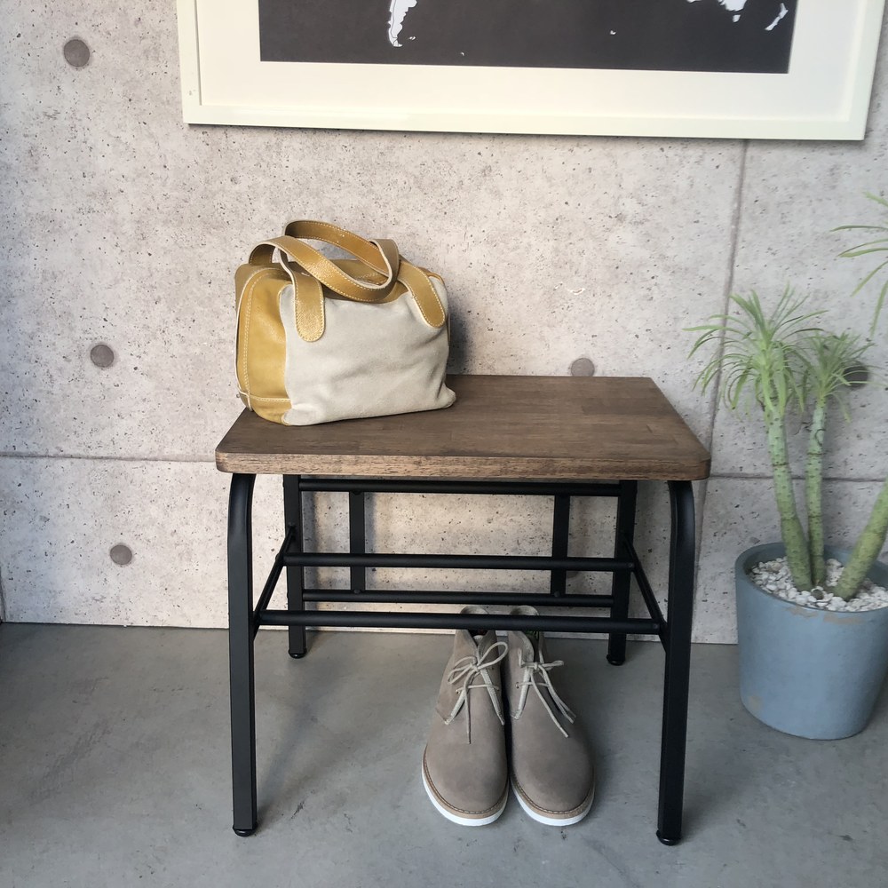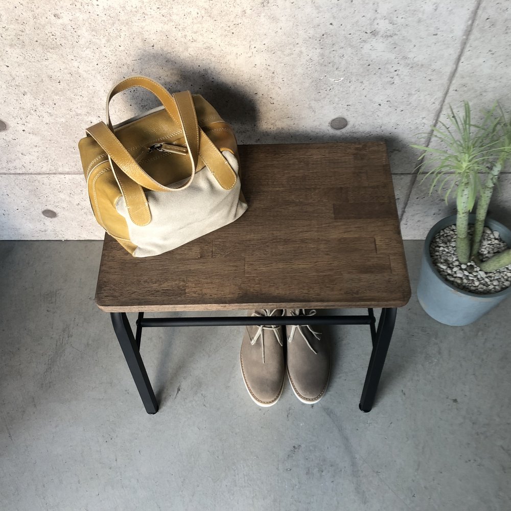 スチールフレームに天然木の座面が映えるシックなデザイン。腰掛けたり荷物を置いたり、下段には靴もしまえて、玄関が美しく保てます。狭い玄関にあると便利な、ベンチ。靴を履くときに腰掛けたり、荷物を置いたり。ひとつあると、何かと重宝します。座面は木目の美しいラバーウッド。下段の棚は脱いだ靴の一時置きにも使用できます。天然木が映えるように、フレームは黒でしめて、シンプルシックな玄関ベンチになりました。