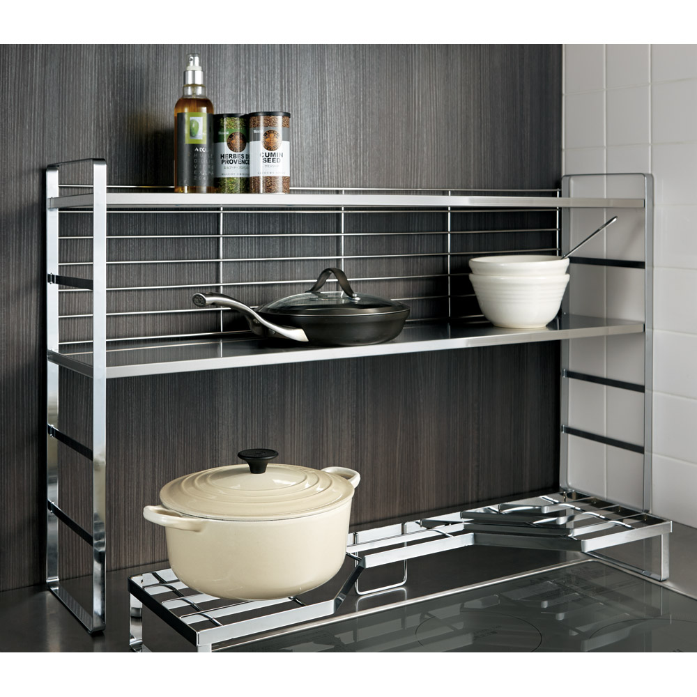 サビに強く丈夫なステンレス製ラックは、キッチンカウンターやコンロ奥のスペースなどにぴったり。 ※写真下のコンロ奥ラックは別売りです。