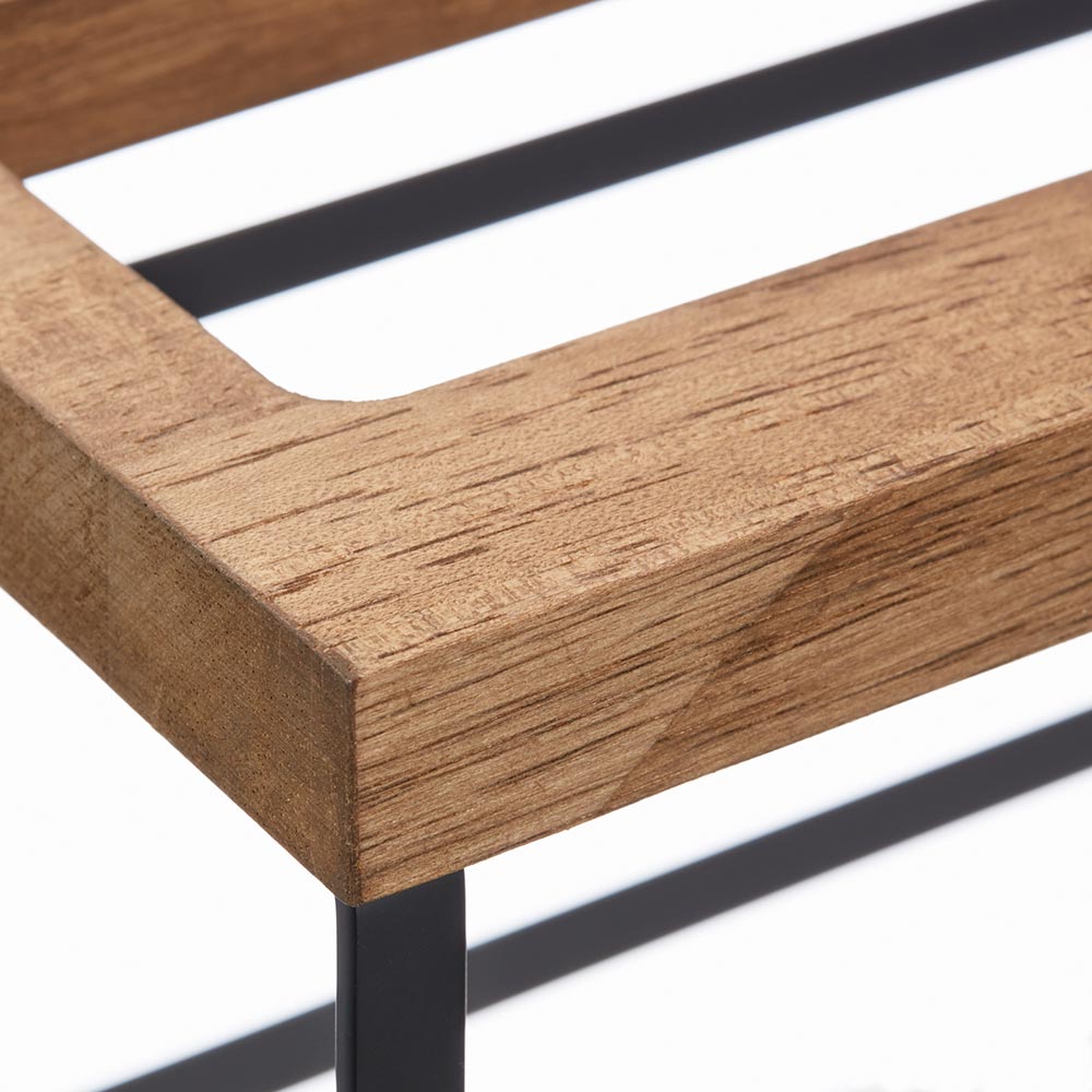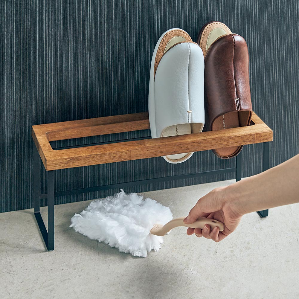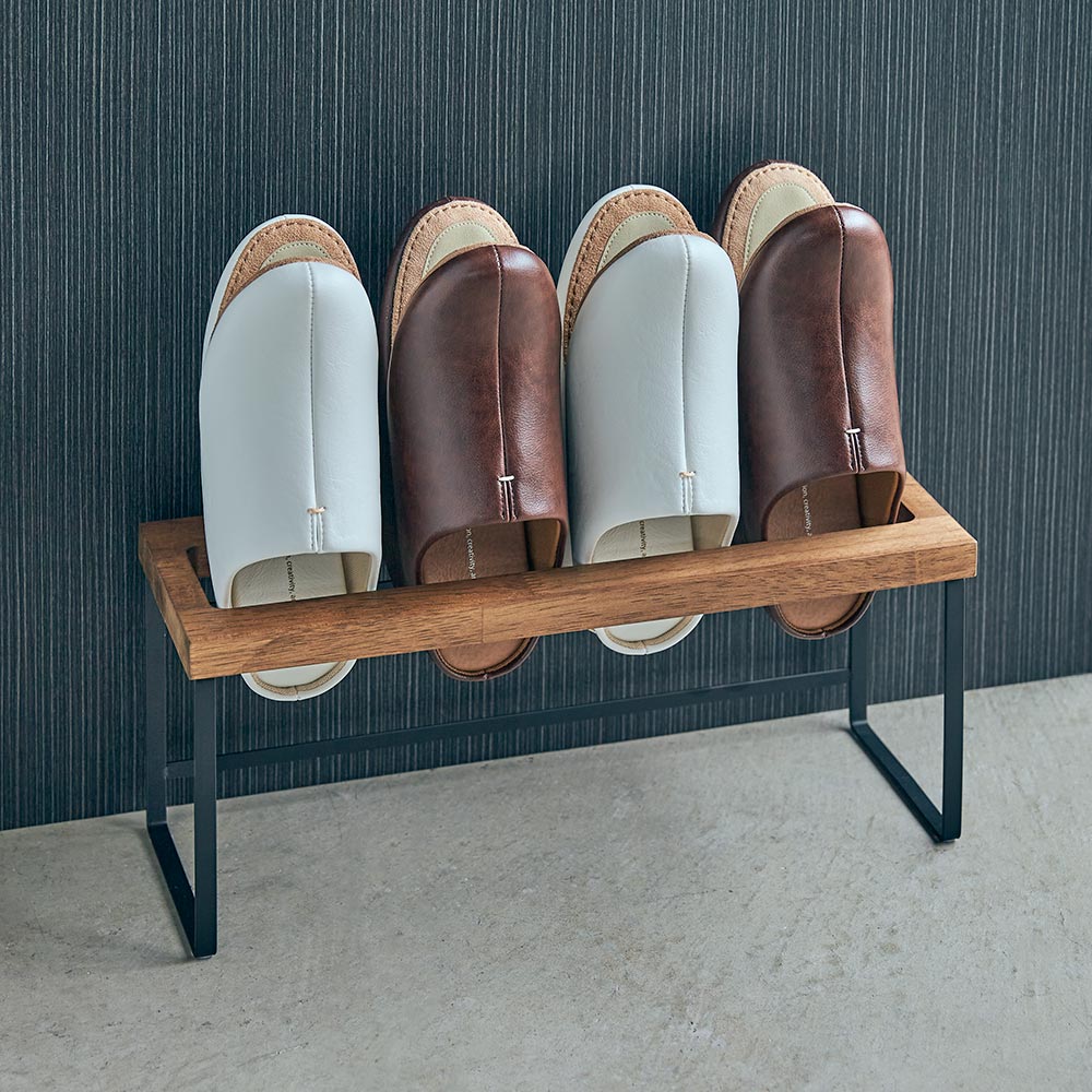 天然木とスチールの異素材使いがスマートな印象のスリッパラック。