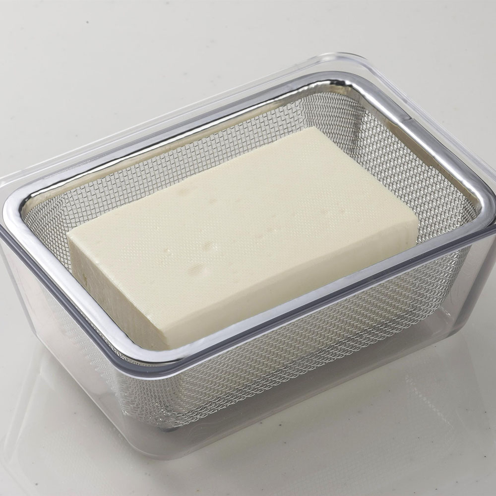 バットとザルはぴったり重なるので、豆腐の水切りにも便利。