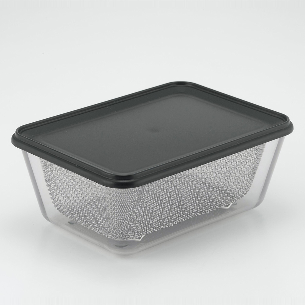 レンジが使える深型バットと角ざるのセット。ふた付きで保存容器としても活躍します。バットは電子レンジOK!透明感のある特殊な樹脂製 下ごしらえから保存、温め直しまでできる耐熱200度のバットは透明感があり、汚れも落ちやすい特殊樹脂製です。下ごしらえした食材をフタ無しで交互に重ねて置けるので、食材の多い料理を作るときにも調理台が広々使えます。ふた付きなので、保存容器としても活躍。角型で、重ねて収納できるので冷蔵庫のスペースをムダにしません。電子レンジで使えるので加熱して下ごしらえするときにも、保存しておいたおかずのあたため直しにも使えてとっても便利です。ザルは脚付きで、燕三条製の丈夫なつくり。 バットにぴったり重なるので、洗った野菜の水切りだけでなく、豆腐の水切りや水切りヨーグルト作りにも活躍。脚は交互に重ねて使う時の転倒防止にもなっています。収納もコンパクト バットとザルはスタッキングができるので1つにまとまります。棚や引き出しなどの収納スペースで幅を取る心配もありません。