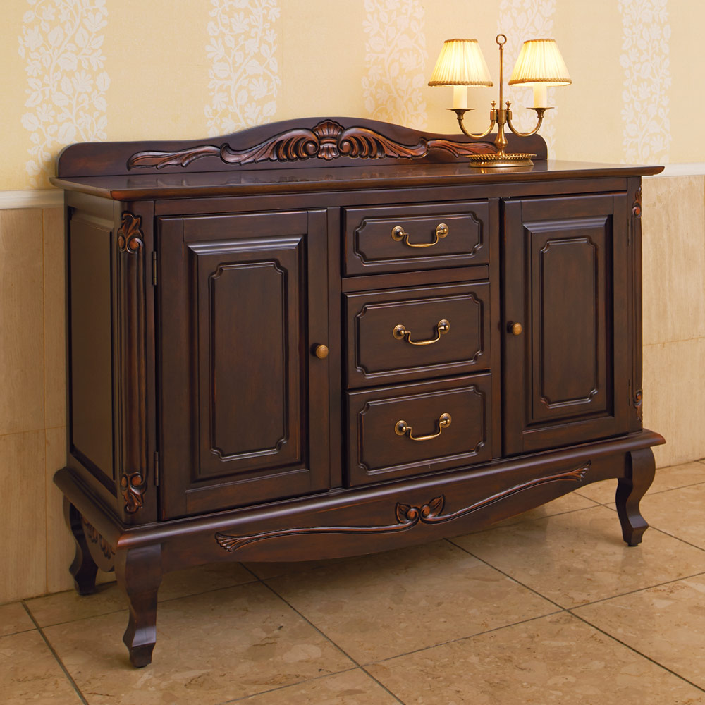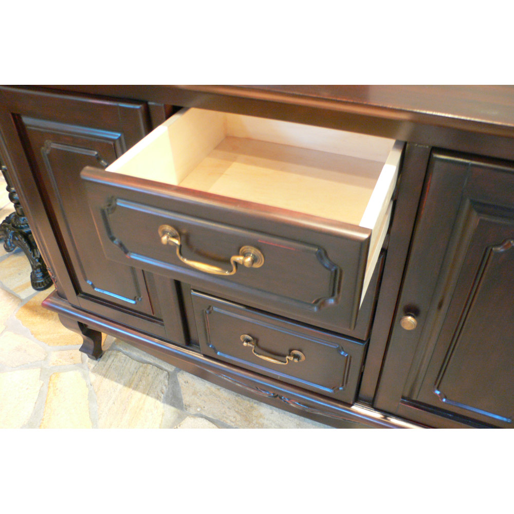 ヨーロッパ風のクラシックなスタイルと、人気のアンティーク風を演出するための味わい深い仕上げが魅力のリビングボード。単品でもインテリアを優雅に彩り、お部屋のコーディネートにも。〜細部までエレガントなアンティーク風輸入家具〜◆凝った彫刻と猫脚のデザインが華やかなアンティーク空間を演出するクラシックインテリアのキャビネット。◆まるでアンティークのように、使い込んだかのような仕上げで味わい深い印象に作りました。◆フレンチアンティークや白家具の世界をご自宅に再現できます。◆マホガニー天然木を贅沢に使用しているので美しく、キャビネットやリビングボードのようにお使い頂けます。◆天板後ろの部分、脚部には見た目が艶やかで、細やかな装飾を施してあります。◆ホワイト、ダークブラウンともに趣きのある仕上げになっています。◆お部屋のコーディネートで外国で暮らすような雰囲気を作り出す逸品です。〜本物志向のあなたにおすすめしたい、丹念な手作業の逸品〜◆ひとつずつ、職人の手で丁寧に磨かれたアンティーク風仕上げの人気商品です。◆脚部の猫足がやわらかな中世フランスのヨーロピアンインテリアを感じさせます。◆シリーズ商品にはテレビ台やサイズ違いのタイプもございます、ぜひご覧ください。◆引出しはしっかりと作った作りになっています。◆取っ手ひとつのデザイン・色もおしゃれにこだわりました。◆デザインの一部である天板飾りは天板上からの落下防止にも役立ちます。◆完成品でお届けしますので届いたその日からすぐにお使いになれます。◆ディノスが自信を持ってお勧めするクラシック家具・輸入インテリアをお楽しみください。※こちらのシリーズはアンティーク風仕上げの塗装に削り加工を施し長年使い込んだような味わいのある風合い(塗装むら、塗装はがれなど)が特徴の商品となります。天然素材ならではの風合いをお楽しみください。〜アンティーク家具の特集はこちら〜アンティーク家具の世界
