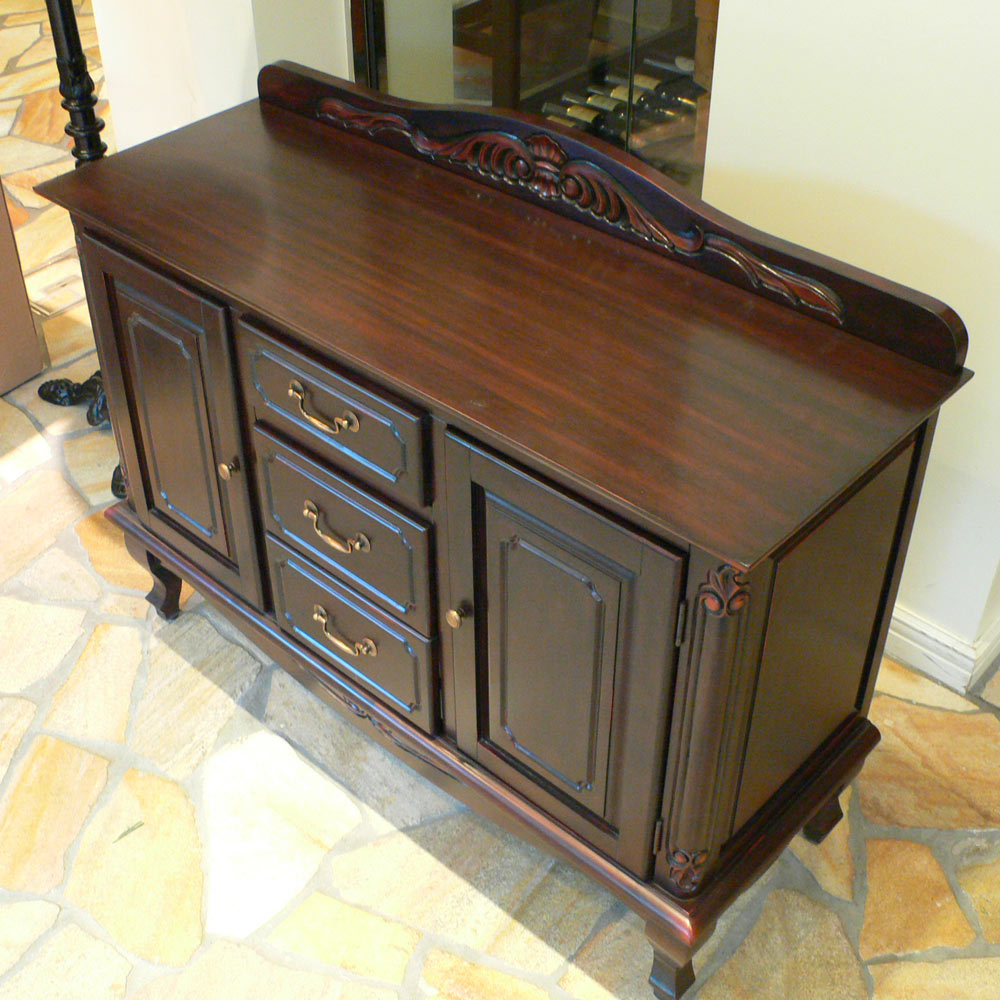 天板飾りは彫り込みでアンティークな雰囲気に。