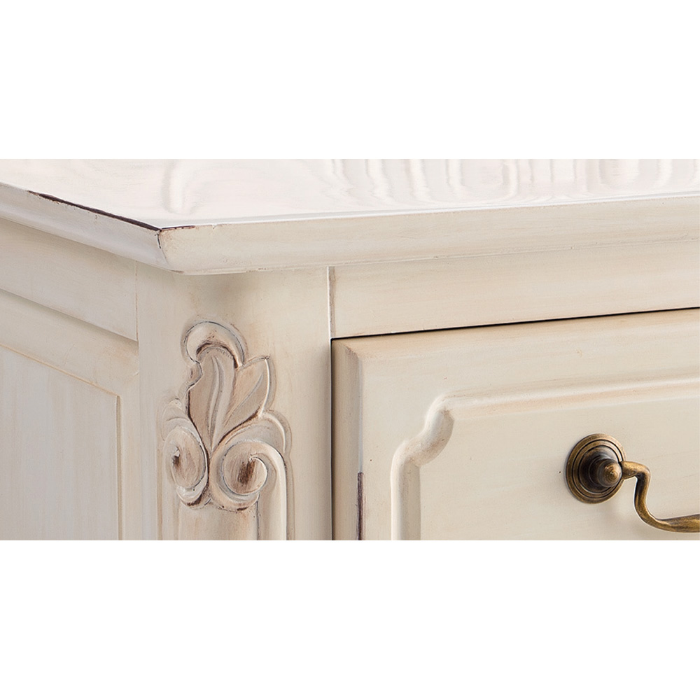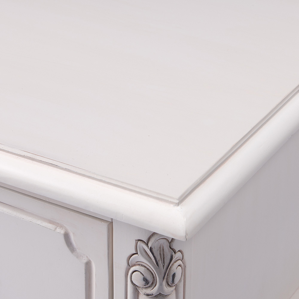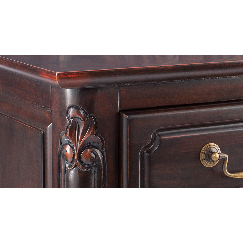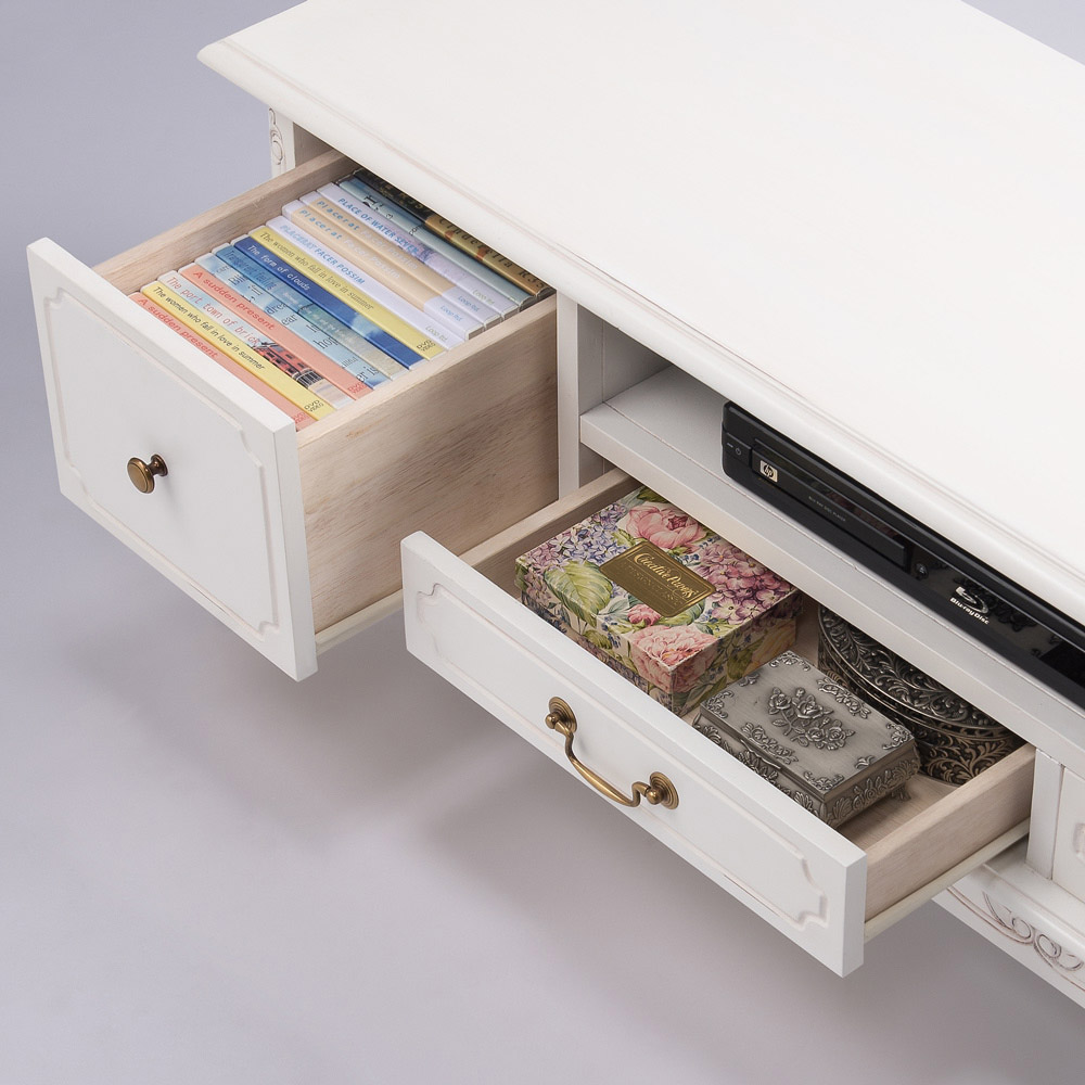 クラシックなスタイルと味わい深い仕上げが魅力のテレビボード。アンティーク風家具の魅力を引き出すために丁寧に塗装部分を削り加工を施しています。デッキ2台とDVDソフトも収納できる人気のTV台です。〜エレガントなアンティーク風輸入家具のテレビボード〜◆凝った彫刻と猫脚のデザインが華やかなアンティーク空間を演出するクラシックインテリアのテレビ台。◆まるでアンティークのように、使い込んだかのような仕上げで味わい深い印象に作りました。◆フレンチアンティークや白家具の世界をご自宅に再現できます。◆マホガニー天然木を贅沢に使用しているので美しく、キャビネットやリビングボードのようにお使い頂けます。◆デッキ類2台が収納でき、引き出しにはDVDソフトが収納できるTVボード。◆背板にはコード穴が1ヵ所付いているので配線も可能です。◆脚部には見た目が艶やかで、細やかな装飾を施してあります。◆ホワイト、ダークブラウンともに趣きのある仕上げになっています。◆お部屋のコーディネートで外国で暮らすような雰囲気を作り出す逸品です。〜本物志向のあなたにおすすめしたい、丹念な手作業の逸品〜◆ひとつずつ、職人の手で丁寧に磨かれたアンティーク風仕上げの人気商品です。◆脚部の猫足がやわらかな中世フランスのヨーロピアンインテリアを感じさせます。◆シリーズ商品にはキャビネットやチェストのタイプもございます、ぜひご覧ください。◆引出しはしっかりと作った作りになっています。◆取っ手ひとつのデザイン・色もおしゃれにこだわりました。◆完成品でお届けしますので届いたその日からすぐにお使いになれます。※こちらのシリーズはアンティーク風仕上げの塗装に削り加工を施し長年使い込んだような味わいのある風合い(塗装むら、塗装はがれなど)が特徴の商品となります。天然素材ならではの風合いをお楽しみください。〜アンティーク家具の特集はこちら〜アンティーク家具の世界
