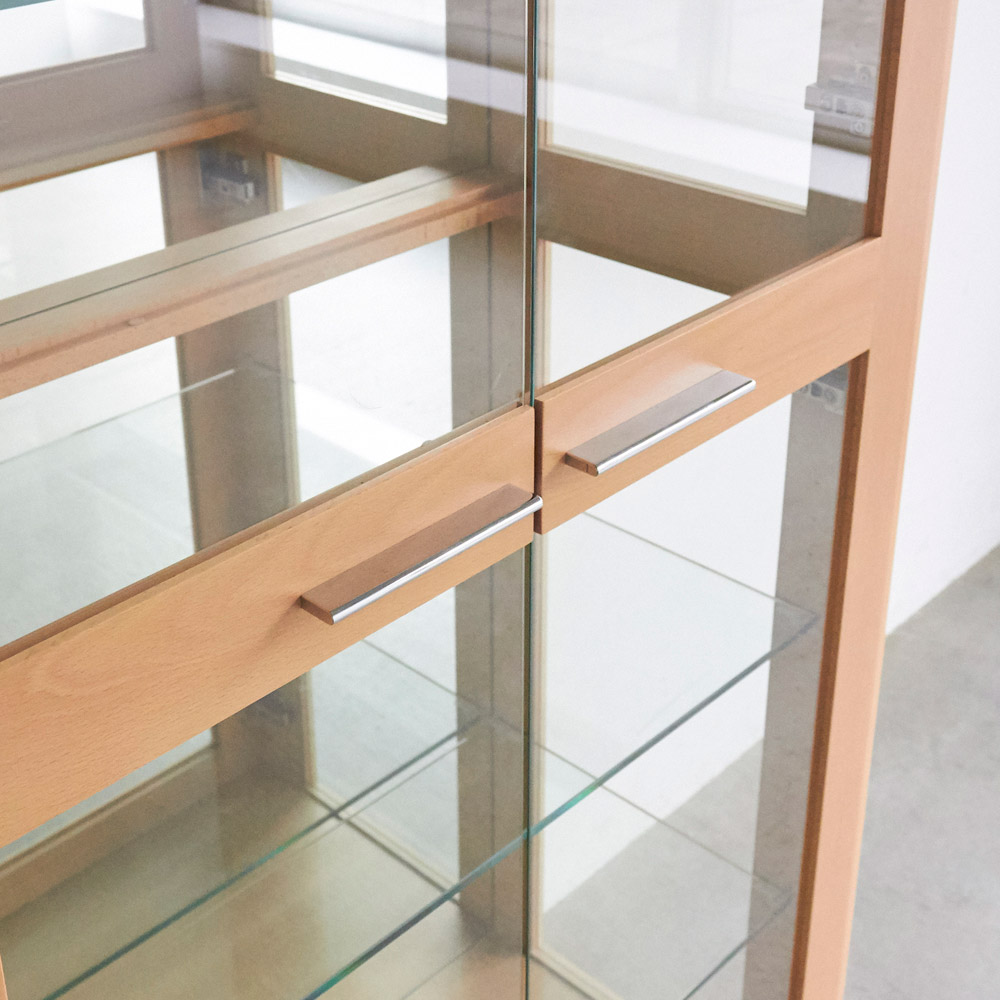 お部屋に設置するだけで上品で落ち着いた雰囲気を醸し出すコレクションリビングボード幅80cm。フレームにビーチ材を採用したブラウン色と清潔感がありインテリアに馴染むナチュラルの2色展開です。大切なコレクションが映えるガラスコレクションラック省エネLEDダウンライトと内側背面がミラー貼りの相乗効果で奥行を広く感じさせお気に入りのアイテムをより一層おしゃれに引き立ててくれるキュリオケースです。圧迫感がないコーナータイプの飾り棚奥行41cmと薄く、お部屋の壁際にぴったり設置でき出来ます。幅60、80cmの2サイズをご用意しました。部屋のスペース、収納量に合わせて選べる2サイズ展開です。幅60cmはスリム&スマートにディスプレイ。幅80cmはLED照明2個付きでコレクションを引き立たせます。照明の光を通すガラスがディスプレイをラグジュアリーに演出耐荷重5kgの可動棚には5mm厚のガラスを採用。安全面にも配慮した設計となっています。シックなウェンジ色とインテリアに馴染みやすいナチュラル色の2色をご用意フレームに高級材のビーチ天然木を採用し重厚感あるウェンジ色と高級感と清涼感を併せ持つナチュラルの2色からお選びいただけます。安心と信頼の国内生産品・熟練の家具職人がひとつずつ丁寧に仕上げたワンランク上のキャビネットです。・家具職人が丁寧に仕上げ、細部にまでこだわった商品です。・国産品ならではの高品質をお楽しみください。・組立不要のしっかりしたつくりの完成品なのでお届け後すぐにご利用できます。