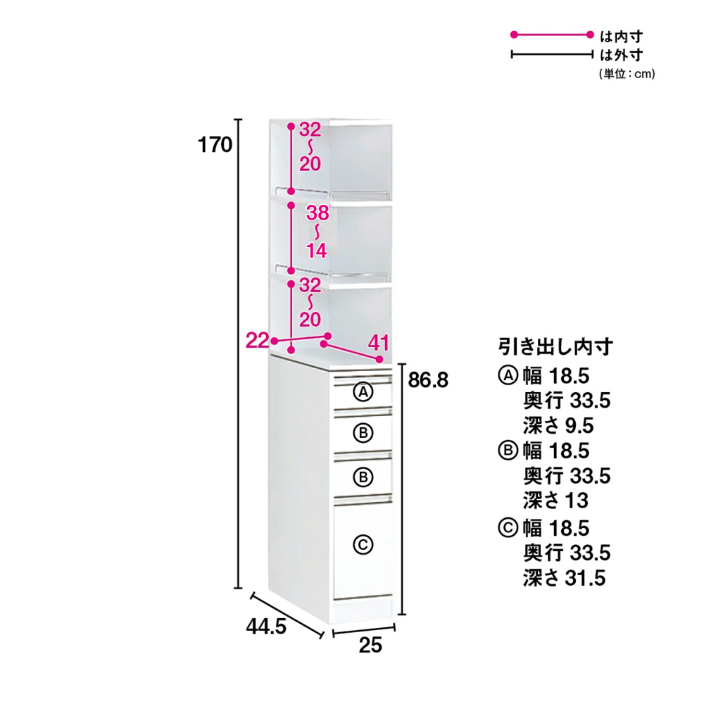 (イ)ホワイト ※写真は幅20奥行44.5cmタイプです。